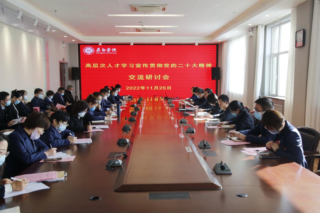 为深入学习贯彻党的二十大精神,进一步激发人才工作活力,为学校高质量发展提供重要人才支撑,11月25日上午,beat365在北校区2号会议室召开高层次人才学习贯彻党的二十大精神交流研讨会。党委书记郝勇东,党委副书记宋志燕,党委委员、副校长王志军出席,党委办公室、组织部、宣传部、人才工作部、教务部、科研部、人力资源部等部门负责人,高层次人才、民主党派、无党派人士代表参加会议。党委副书记宋志燕主持。