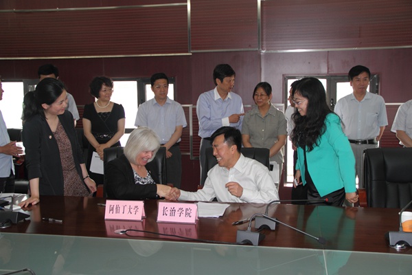 教育厅国际处李易青处长首先对Barbara Fennell-Clark女士的来访表示热烈欢迎。她指出教育厅一贯重视高等教育的发展,支持高校扩大对外开放,与国外高校开展校际合作,提升国际化水平。山西省教育厅大力支持与阿伯丁大学的合作,将在公派出国留学、聘请外专外教、承担合作项目、来晋留学奖学金名额等方面给与倾斜。随后,茹文明副院长简要介绍了我院概况,并就我院的特色专业和对方进行了交流,希望双方能尽快落实具体合作项目,积极开展长效可持续的合作交流机制。最后,茹文明副院长与Barbara Fennell-Clark女士分别代表两校签署了合作交流备忘录。根据协议,双方就生物制药、化学工程、计算机网络工程等领域的师生派出和科研合作达成了合作意向。