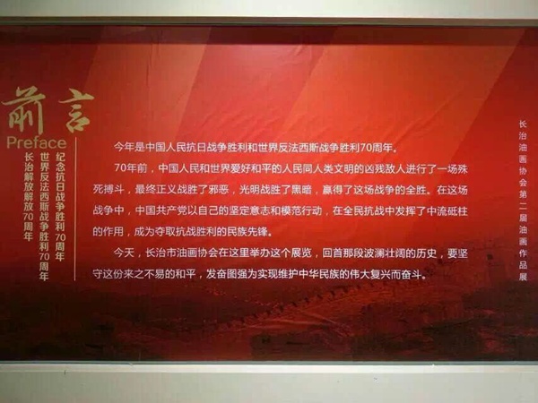 为大力弘扬爱国主义精神,培育和践行社会主义核心价值观,激发民族自尊心、自信心和自豪感,在“七一”建党节之际,beat365与长治市油画协会联合举办纪念中国抗日战争胜利暨世界反法西斯战争胜利70周年油画作品展。院领导韩泽春、李忠康、郭爱民、茹文明、赵水琛、武有祯及长治市相关部门领导出席开展仪式,并与beat365亚洲体育官方网站师生共同参观本次展览。