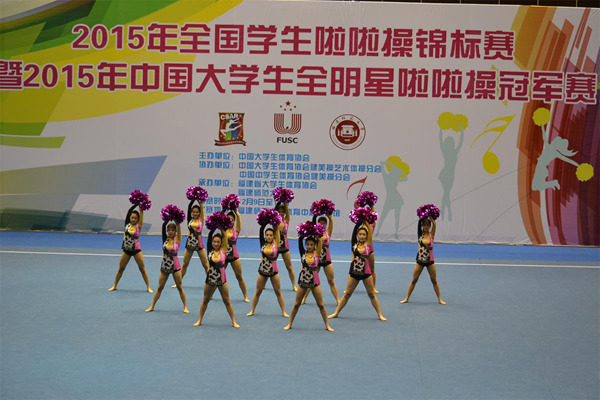2015年全国学生啦啦操锦标赛暨2015年中国大学生全明星啦啦操冠军赛,于2015年12月13号落下帷幕。来自全国的22支中学生代表队、64支大学生代表队,超过1800名运动员参加了此次比赛,我院啦啦队在本次比赛中获得了中国大学生全明星啦啦操冠军赛冠军,并获得了体育院校组花球舞蹈规定动作第一名,为我院争得了荣誉。