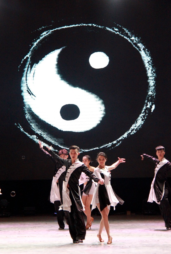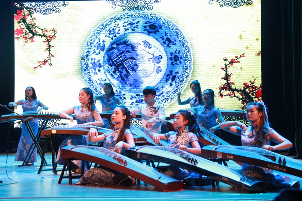 随着音乐响起,舞蹈《扇花花开》的舞者们如精灵般舞动,他们以翩翩舞姿为本场晚会拉开序幕;女声独唱《同在蓝天下》歌喉动人,赢得现场阵阵掌声;一曲《琵琶语》琵琶合奏余音绕梁让人沉醉;校园歌曲联唱《外面的世界》和《同桌的你》带领大家重温青春记忆,瞬间将晚会气氛点燃;而气势恢弘的大合唱《忆秦娥娄山关》,则让人感到波澜壮阔的图景就在眼前,现场气氛燃至沸点。在经过热情的萨克斯重奏与优雅的古筝弹奏之后,晚会以舞蹈《共筑中国梦》收尾,令人意犹未尽。