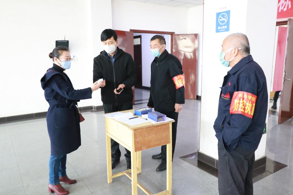 2020年2月24日上午,在副院长李长江带领下,学生处(学工部)处(部)长武江红、后勤处处长韩峰、保卫处处长宋占伟、院办副主任董建新和宣传部副部长王中一行6人对北校教学区、家属区进行开学前疫情防控工作检查。
