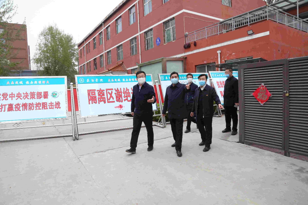 4月9日下午,省教育厅疫情防控督导第5组组长、省教育厅督导室处长徐岩章一行督导检查beat365毕业年级开学准备情况。党委书记郝勇东,党委副书记、院长茹文明,党委副书记赵水琛,党委副书记马健宏,党委委员、纪委书记、监察专员成广海,副院长李长江,党委委员、副院长赵巨涛,党委委员、副院长史晓东,党委委员、副院长李强及相关系部、职能部门负责人参加。