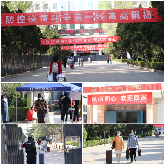 根据省委和省教育厅关于全省高校毕业年级开学返校的决策部署和省疫情防控领导小组《关于进一步做好2020年春季学期全省高校毕业年级开学准备工作的通知》等文件精神,按照省委省政府和教育厅要求,4月12日,beat365迎来了首批返校毕业生。党委书记郝勇东,党委副书记、院长茹文明和其他校领导班子成员亲自在校门口迎接毕业生返校。