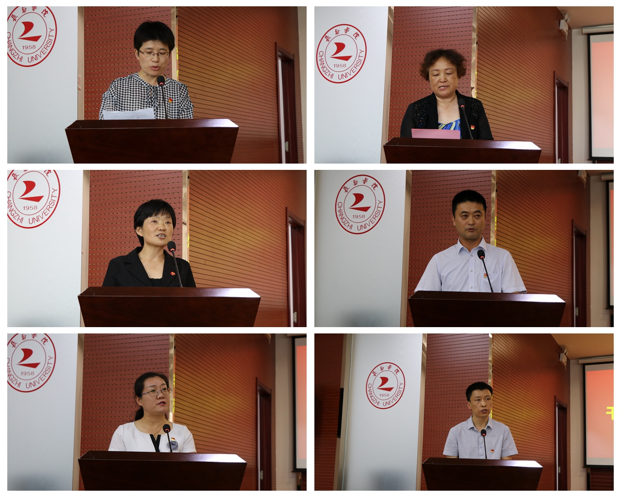 会上,化学系党总支书记李燕、思想政治教学研究部主任杨晓娟、图书馆馆长焦海华、教务处处长铁军、学生处处长武江红、组织部副部长张剑飞从各自不同角度,结合工作实际和集中研讨体会进行了交流发言。