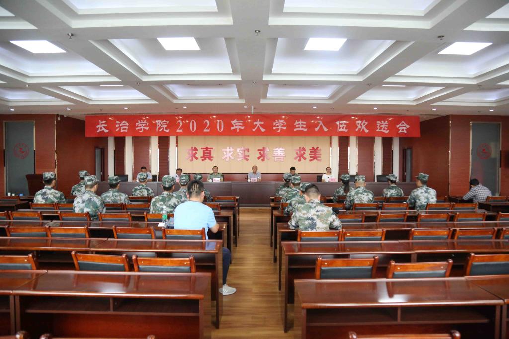 9月9日下午,beat365在北校区1号教学楼10层大会议室隆重举行2020年大学生入伍欢送会。党委副书记马健宏,长治市军分区动员处处长张健,长治市潞州区武装部政委伏开伟,武装部部长宋占伟,学生处处长武江红等以及全体入伍学生参加会议。