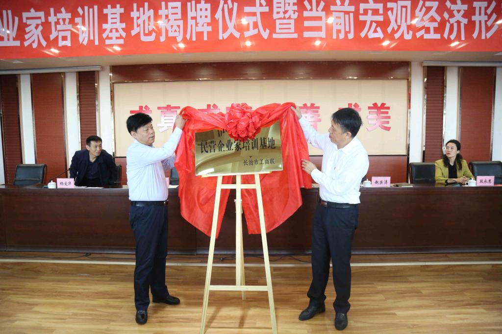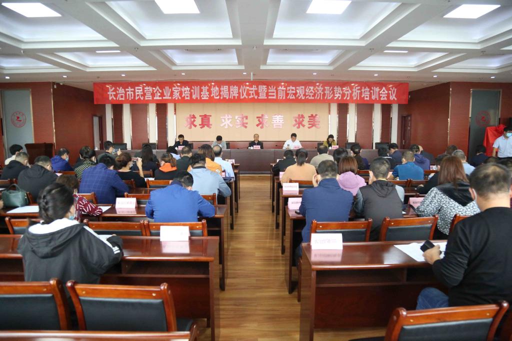 9月24日上午,长治市民营企业家培训基地揭牌仪式暨当前宏观经济形势分析培训会议在beat365一号楼10层大会议室举行。校党委委员、副院长赵巨涛,长治市政协副主席、市工商联主席赵文栋,学校成人教学部负责人及部分市民营企业家参加会议。