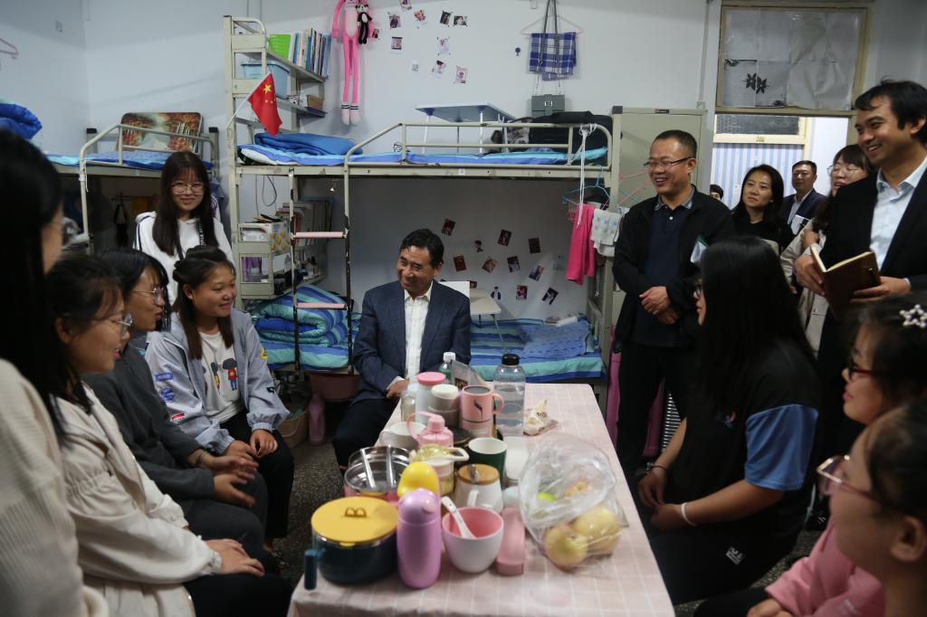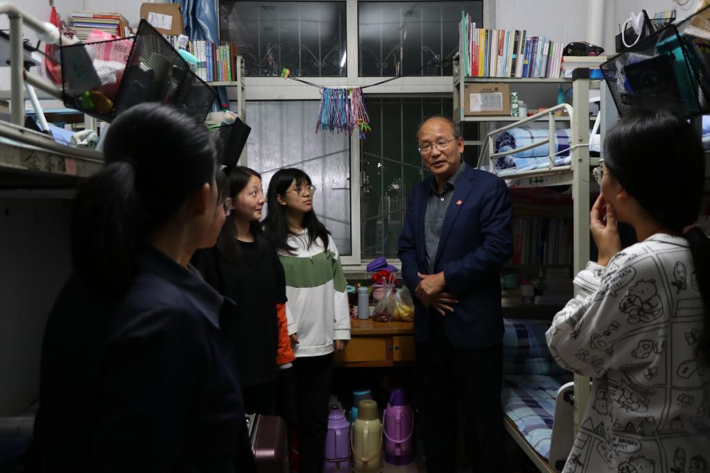 9月29日晚,在中秋节来临之际,院党委书记郝勇东,党委副书记、院长茹文明,党委副书记马健宏,纪委书记、监察专员成广海,党委委员、副院长赵巨涛,党委委员、副院长史晓东一行深入宿舍区看望学生并赠送中秋月饼致以节日的祝福。