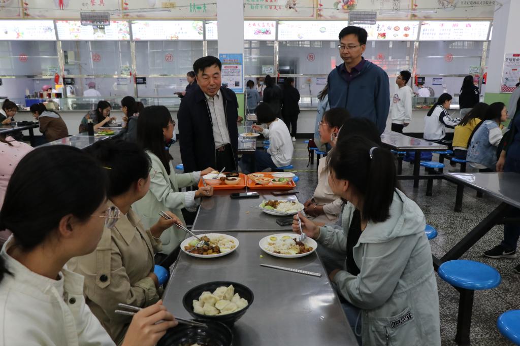 “今年因为疫情影响,课程安排时间紧张,学校决定缩短放假时间,同学们不能和家人一块儿过节。大家在学校吃得习不习惯?生活上还有什么困难没有?”在北校学生餐厅,茹文明院长每到一处就仔细询问同学们在校期间的学习生活情况,餐厅饭菜的质量,餐厅的卫生和食品安全问题。他向正在用餐的同学们送上节日的祝福。“每逢佳节倍思亲”。他嘱咐身边的工作人员,要牢固树立“以人为本”“以生为本”的理念,学生的事无小事。同学们远离父母和家人,一定要为他们创设优雅舒适安全和谐的校园氛围,保证他们度过一个温暖、祥和、快乐的中秋佳节。