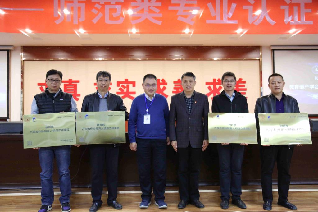 会后,赵巨涛、严武军与美术、数学、外语、中文等系部的领导共同出席了教育部产学合作协同育人项目启动暨授牌仪式。