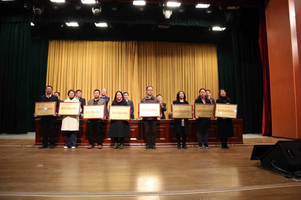 会上,学校党委行政对光电信息技术教研室、学前教育教研室、语言学教研室等3个山西省高等学校示范基层教学组织;电子信息与物理系、思想政治教学研究部、生物科学与技术系、中文系、数学系等5个校级教学管理先进单位;2019年山西省教学成果奖省级一等奖:生物科学与技术系《地方本科院校生物科学专业动物学课程课堂教学改革与实践》,思想政治教学研究部《高校思想政治理论课实践教学质量监控体系研究》、外语系《地方本科院校英语专业卓越人才培养——“英语演讲艺术”课程体系多维创新与实践》《应用型院校明晰式英语学习策略培训模式的创新与实践》,电子信息与物理系《基于地方本科院校转型视阈下卓越中学教师培养模式的研究与实践》,计算机系《应用型本科院校<计算机基础及应用>课程教学改革研究与实践》等5项2019年山西省教学成果奖省级二等奖;从教30年的行高民老师;程娇等14名2020年青年教师教学竞赛获奖者;赵栋栋等38名审核评估先进个人代表;李金梅等29名2020年优秀教师代表进行了表彰。
