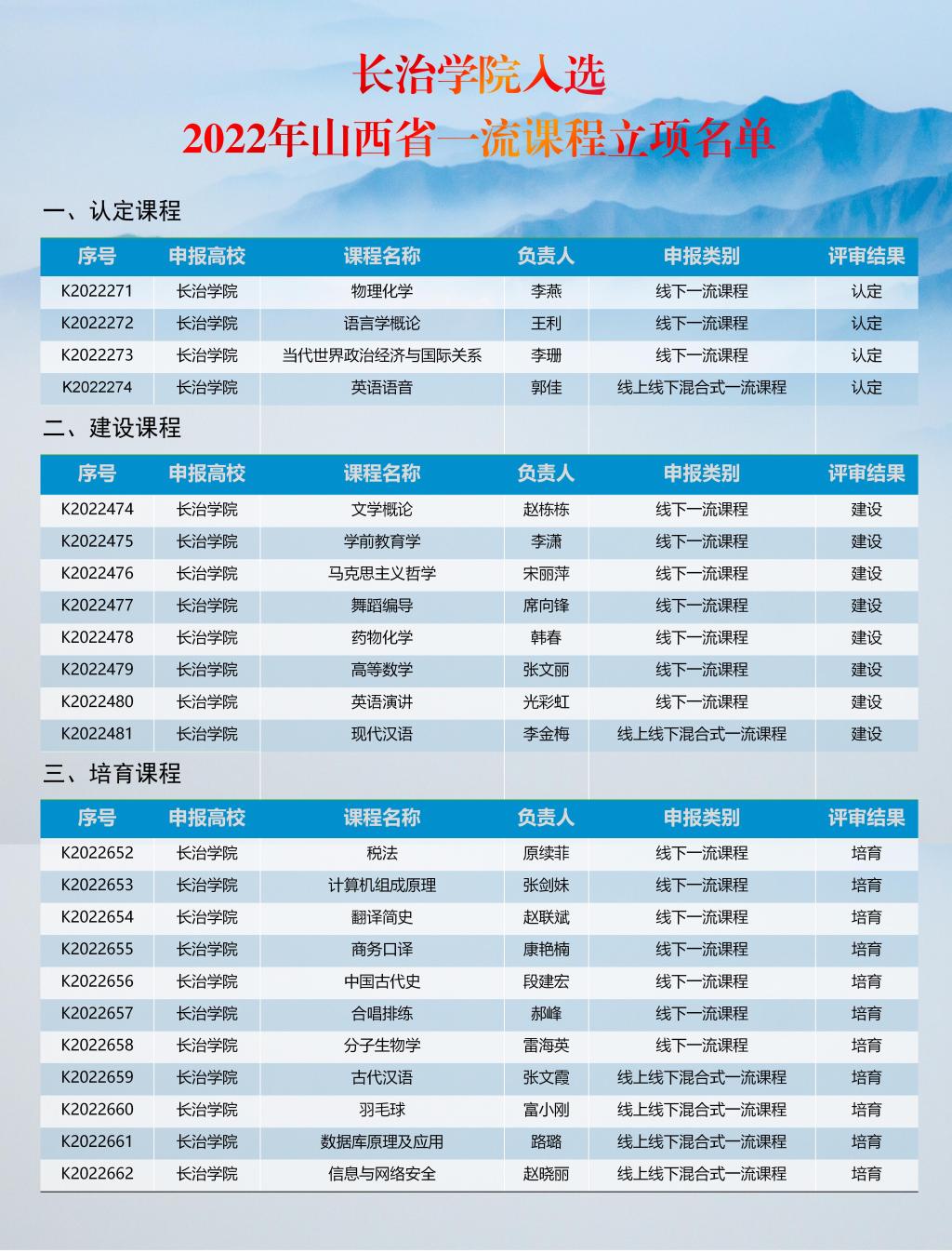 近日,山西省教育厅公布了《山西省教育厅关于公布2022年山西省一流课程立项名单的通知》,beat365共有23门课程获批立项,其中认定课程4项,建设课程8项,培育课程11项,取得了beat365课程建设的新突破。