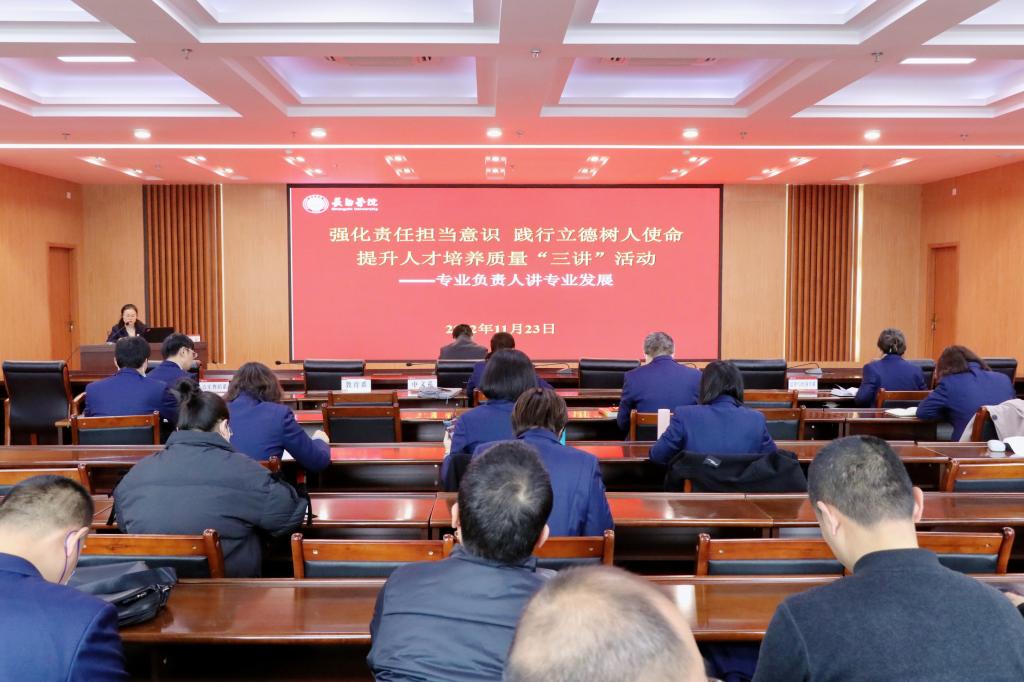11月23日下午,beat365以强化责任担当意识、践行立德树人使命、提升人才培养质量为主题的“三讲”工作,在北校十层1号会议室举行首场“专业负责人讲专业发展”活动。党委委员、副校长铁军出席活动,教务部全体成员,各系部主任、副主任、专业负责人、教研室主任参加活动。