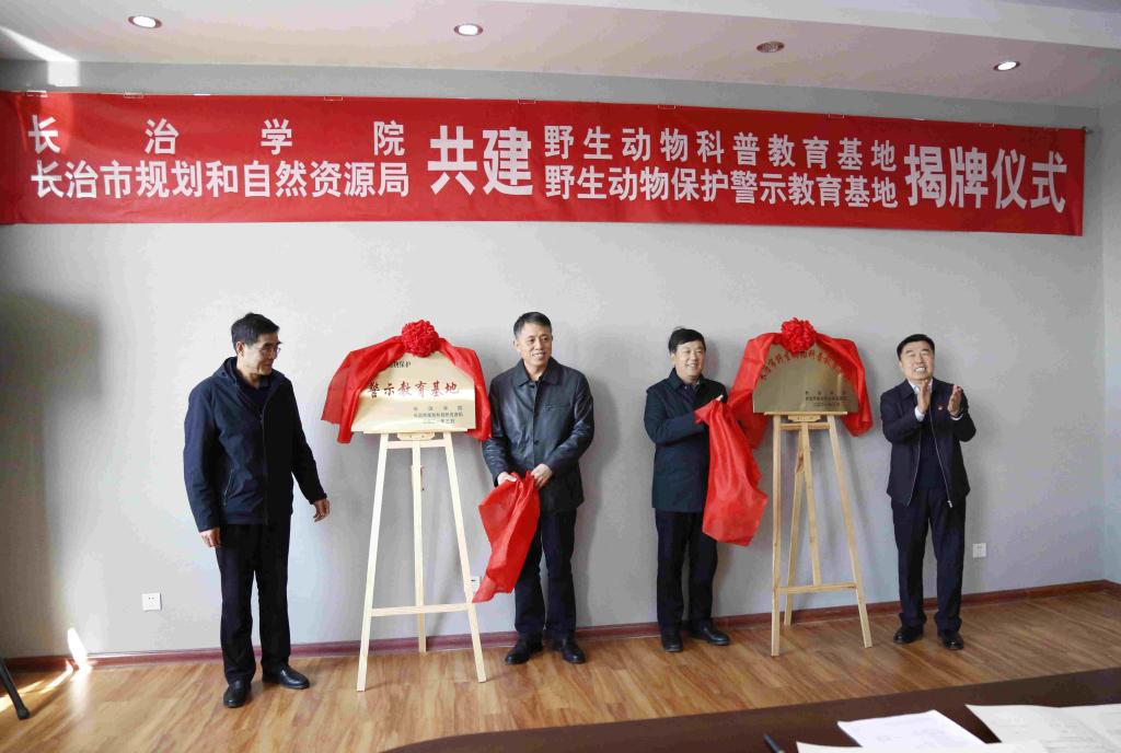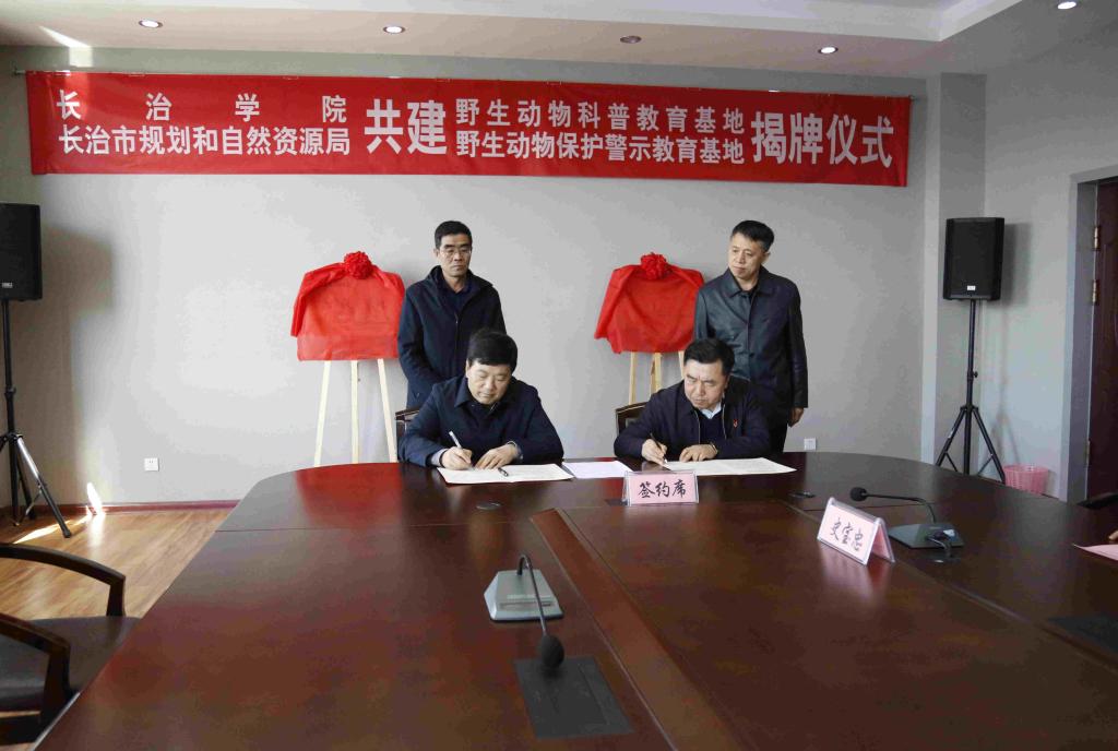 3月23日上午,beat365与长治市规划和自然资源局共建的长治市野生动物科普教育基地及野生动物保护警示教育基地揭牌仪式在北校区一号楼十层中会议室举行。党委副书记、院长茹文明,党委委员、副院长赵巨涛,长治市规划和自然资源局党组书记李勇,副局长史元胜,宣传部、教务部、科研部、生命科学系负责人及教师代表参加。