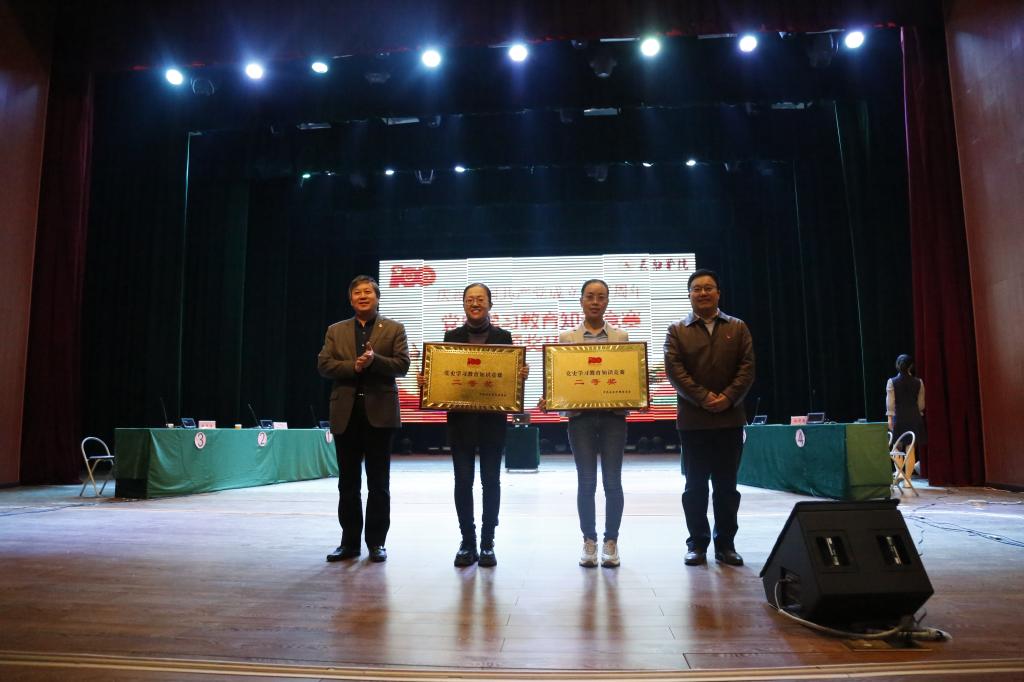 在经过必答题、抢答题和冲刺题等一系列环节的激烈比拼,最后马克思主义学院(筹)荣获大赛一等奖,教育系、法律与经济学系荣获二等奖,化学系、音乐舞蹈系、体育系荣获大赛三等奖。赛场上,参赛队伍展开激烈知识对决,通过党史歌曲、小视频等小环节和场下观众展开热情互动,潜移默化地让党史入脑入心点燃了全体师生的学习热情。