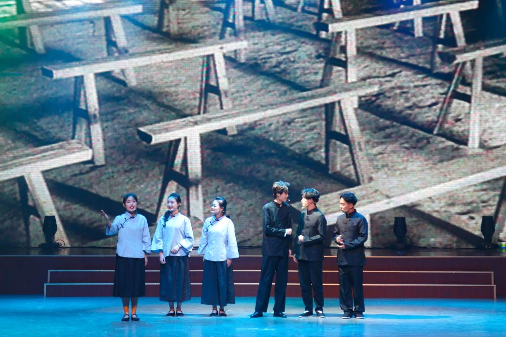 本次演出,在全体奏唱国歌后拉开帷幕。情景朗诵《一颗树高高站着》,讲述了抗日战争时期朱德总司令在王家峪亲手所种下的红星杨,经历岁月的洗礼,红星杨依然屹立于此,向我们讲述那段难忘的经历;情景讲述《左权家书》,用生动的朗诵与演绎,向我们展示了伟大的无产阶级革命家和军事家,——左权将军的铁汉柔情;《太行奶娘》歌颂了抗战时期不惜牺牲一切,不辞辛劳奋斗在抗战后方,用生命养育了一批革命后代的英雄妇女;朗诵剧《抗大》反映了抗大一分校在抗日烽火中诞生的历程;舞蹈短剧《那年西沟》反映了上世纪50年代,申纪兰当选西沟初级农业生产合作社副站长,奔走在西沟劳动的一线,她主张男女同工同酬,亲身扎根西沟,不忘劳动,不忘人民,用一生的忠诚和热情谱写西沟改革发展的感人事迹;短剧《文秀同学》演绎了beat365亚洲体育官方网站优秀毕业生、优秀共产党员黄文秀奋斗在脱贫攻坚第一线的生动故事和奉献自我的伟大精神,她用美好青春诠释了共产党人的初心使命,谱写新时代青春之歌的光辉事迹;情景讲述《闪亮的名字》介绍了一座耸立于太行的城市——山西长治,以成千上万名“长治好人”城市名片闻名全国;朗诵《不一样的年代一样的青春》展示了长院学子勇担青春责任,肩负时代使命,到祖国最需要的地方去的坚定决心。演出在舞蹈《在灿烂的阳光下》中缓缓落下帷幕。