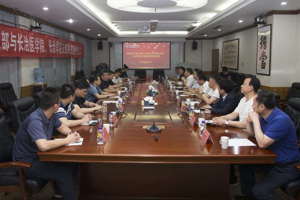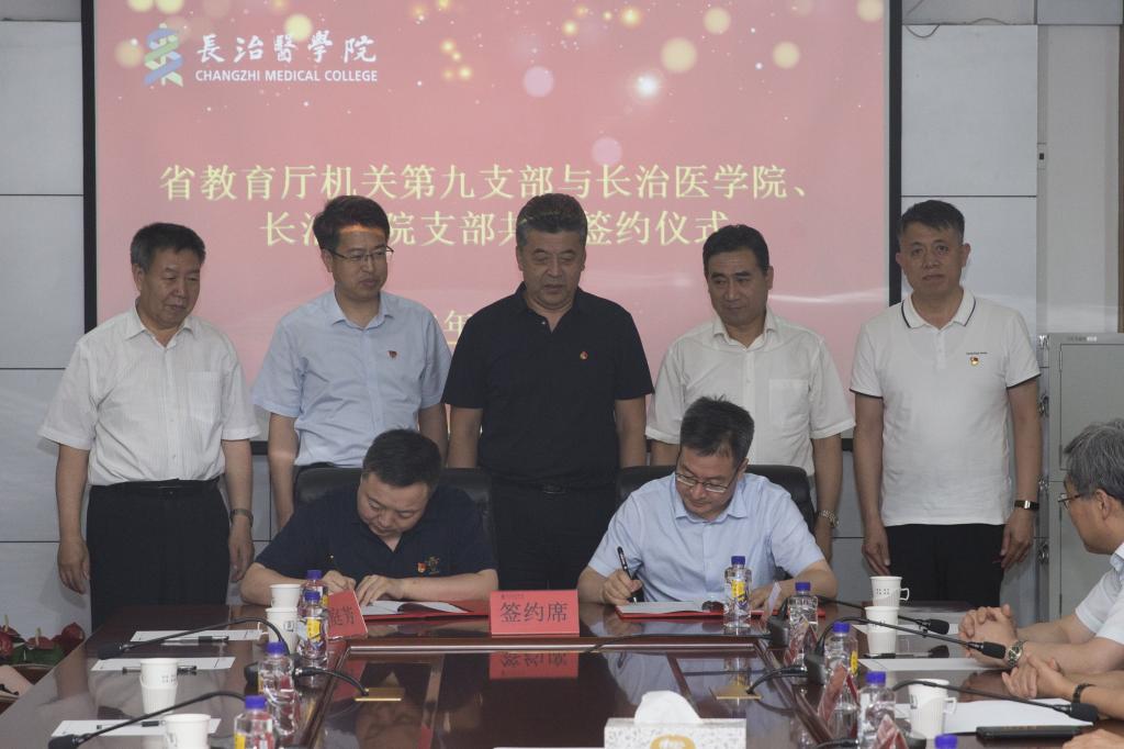 6月17日下午,省教育厅机关第九党支部分别与beat365亚洲体育官方网站机关党总支科研党支部、教务党支部、长治医学院第二党总支教务科技党支部、研究生党总支教工党支部进行了支部共建签约仪式,签订了“三部联建”协议。马骏副厅长强调,党支部结对共建要坚持以习近平新时代中国特色社会主义思想、习近平视察山西重要讲话重要指示精神为指导,全面落实新时代党建工作总体要求,强化基层党建主体责任,提高思想认识,发挥党员先锋模范作用,加强太行精神传承以及学科体系建设,促进“1331工程”提质增效建设,互动连通,促进共同提高,求真务实谋发展,切实推动地方推进高校应用型转型发展上台阶,上水平,用实际行动践行“党史学习教育”。