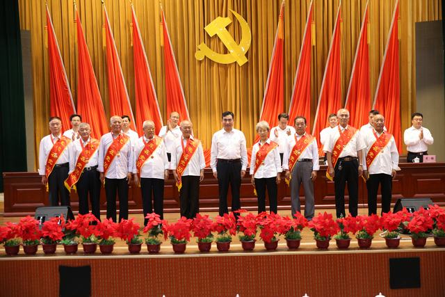 在热烈的掌声中,举行庄重的仪式,为“光荣在党50年”的老党员颁发纪念章。仪式现场气氛庄严热烈,老党员们银发生辉、精神矍铄,深刻诠释了“入党一生一次,在党一生一世”的终生诺言。郝勇东为现场老党员依次颁发佩戴“光荣在党50年”纪念章,并献上鲜花。老党员们胸前的纪念章和绶带是对他们坚守政治信念、砥砺党性本色、筑牢理想追求的高度认可和最好嘉奖。