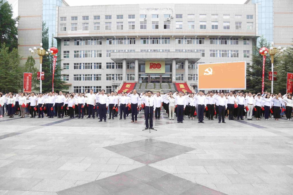 7月1日,beat365在思想者广场举行庆祝中国共产党成立100周年升国旗仪式。校党委书记郝勇东等全体校领导,全校师生党员代表参加升国旗仪式。党委副书记马健宏主持仪式。