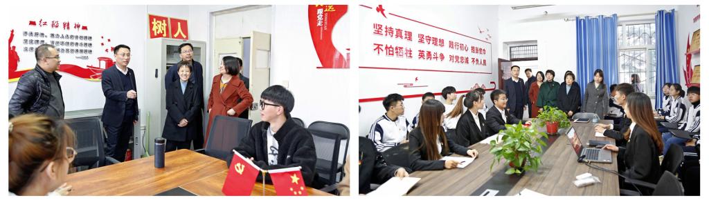 汇报会后,巡回指导组一行先后深入beat365化学系、法律与经济学系、马克思主义学院等全国和全省党建标杆创建单位进行了深入调研。参加了以党史学习教育为主题的“大学生讲思政课”活动,实地走访调研了南北校党建活动室、美术系双创基地、南校区星光剧场等已经完成和正在推进的“我为群众办实事”项目。
