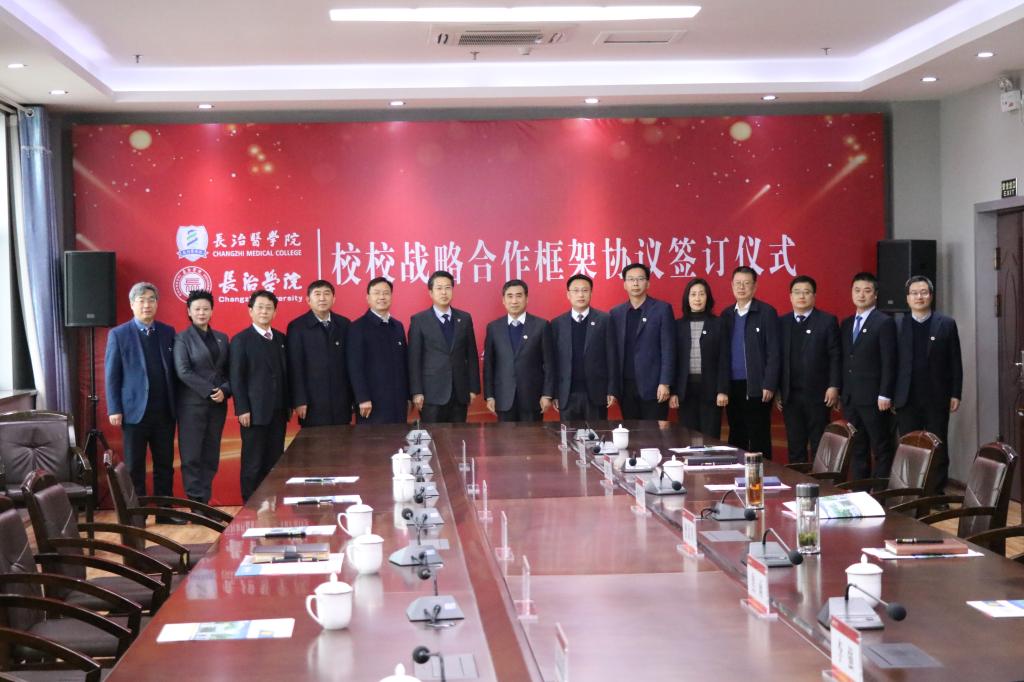 太行千里连芳草,上党同仁联谊好。同处太行文化沃土,扎根上党大地办学的beat365亚洲体育官方网站与长治医学院,多年来孜孜不倦,耕耘不息,在巍巍太行山和滔滔漳河水的滋养下,共肩育人使命,赓续红色血脉,在服务地方经济社会发展的同时均取得显著办学成绩。1月6日,两校战略合作框架协议签订仪式在beat365亚洲体育官方网站1号楼10层中会议室圆满召开,重磅开启了两校凝聚共识,携手共进,走向光明未来的崭新篇章。
