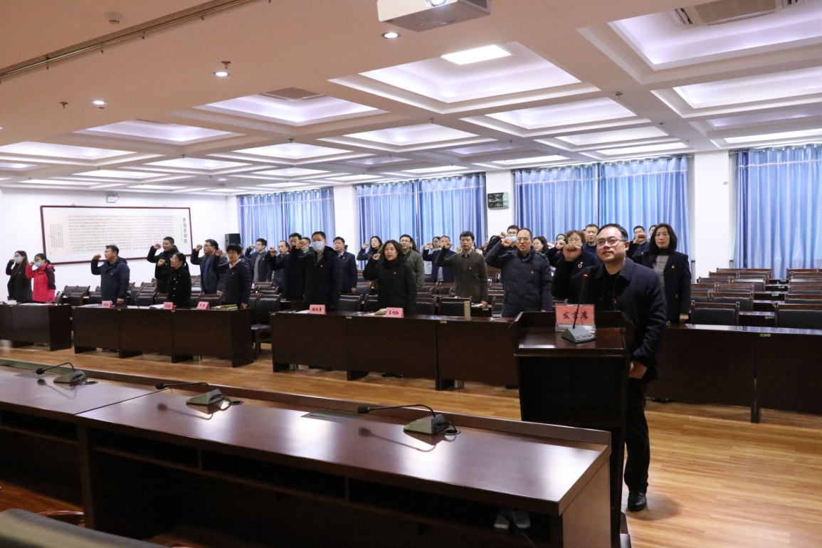 会上,新任干部代表进行了表态发言。与会人员进行了集体廉政宣誓。