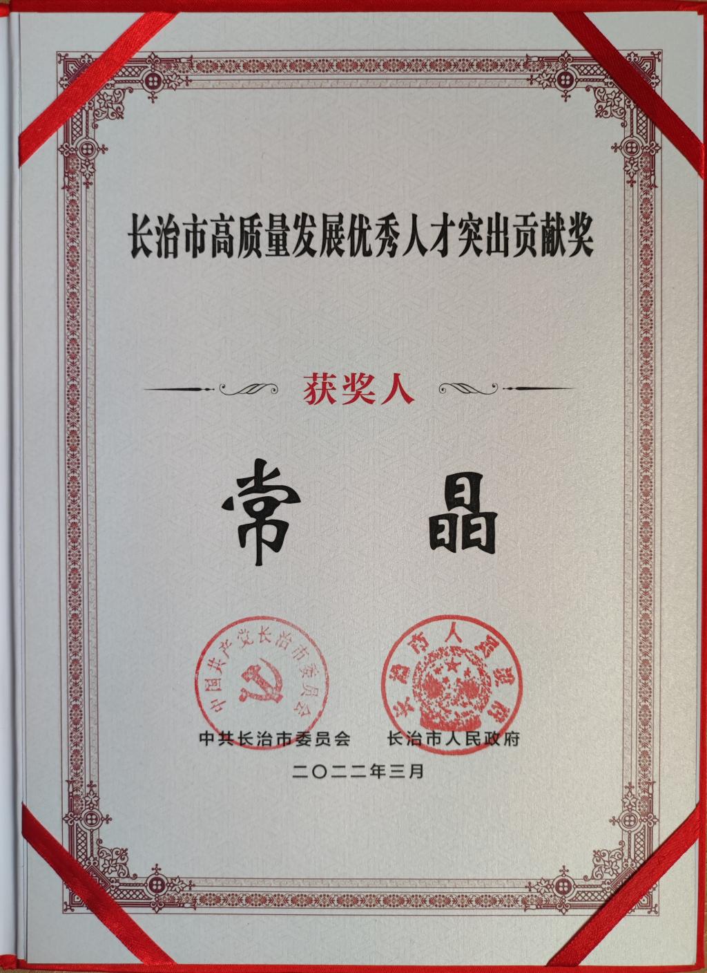 4月26日,长治市委人才工作会议召开,会议对4名“长治市高质量发展优秀人才突出贡献特别奖”获得者、6名“长治市高质量发展优秀人才突出贡献奖”获得者进行了表彰奖励。beat365马克思主义学院教授常晶荣获长治市高质量发展优秀人才突出贡献奖。