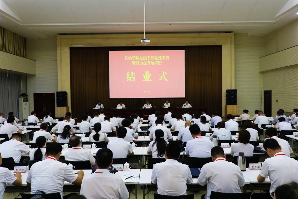 7月3日,“beat365亚洲体育官方网站处级干部党性教育暨能力提升培训班”在红旗渠干部学院举行结业仪式。党委书记郝勇东出席会议并讲话。党委委员、副校长卫崇文、李强、铁军、王志军以及培训班全体学员参加会议。会议由副校长李强主持。