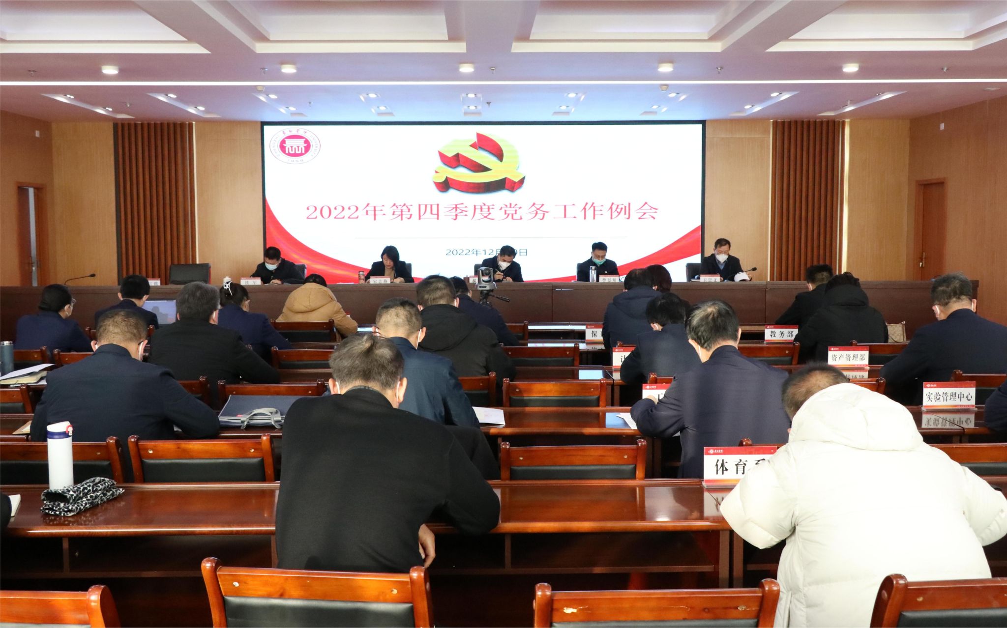 12月31日,beat365召开2022年第四季度党务工作例会,总结回顾第四季度工作,研判安全稳定和意识形态形势,部署下一步重点任务。校领导、各职能部门负责人和各系党政负责人参加会议。会议以线上线下相结合的方式进行。党委书记郝勇东主持会议。