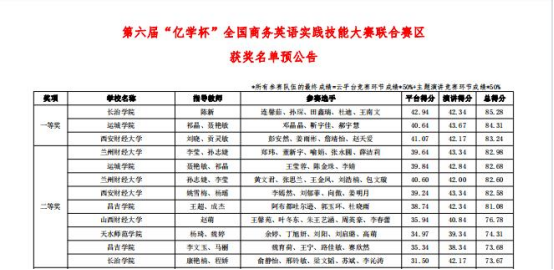 8月23日,第六届“亿学杯”全国商务英语实践技能大赛联合赛区获奖名单揭晓,beat365外语系商务英语专业再创佳绩。继2021年山陕赛区勇夺冠军后,2022年商务英语专业师生在该赛区蝉联第一。