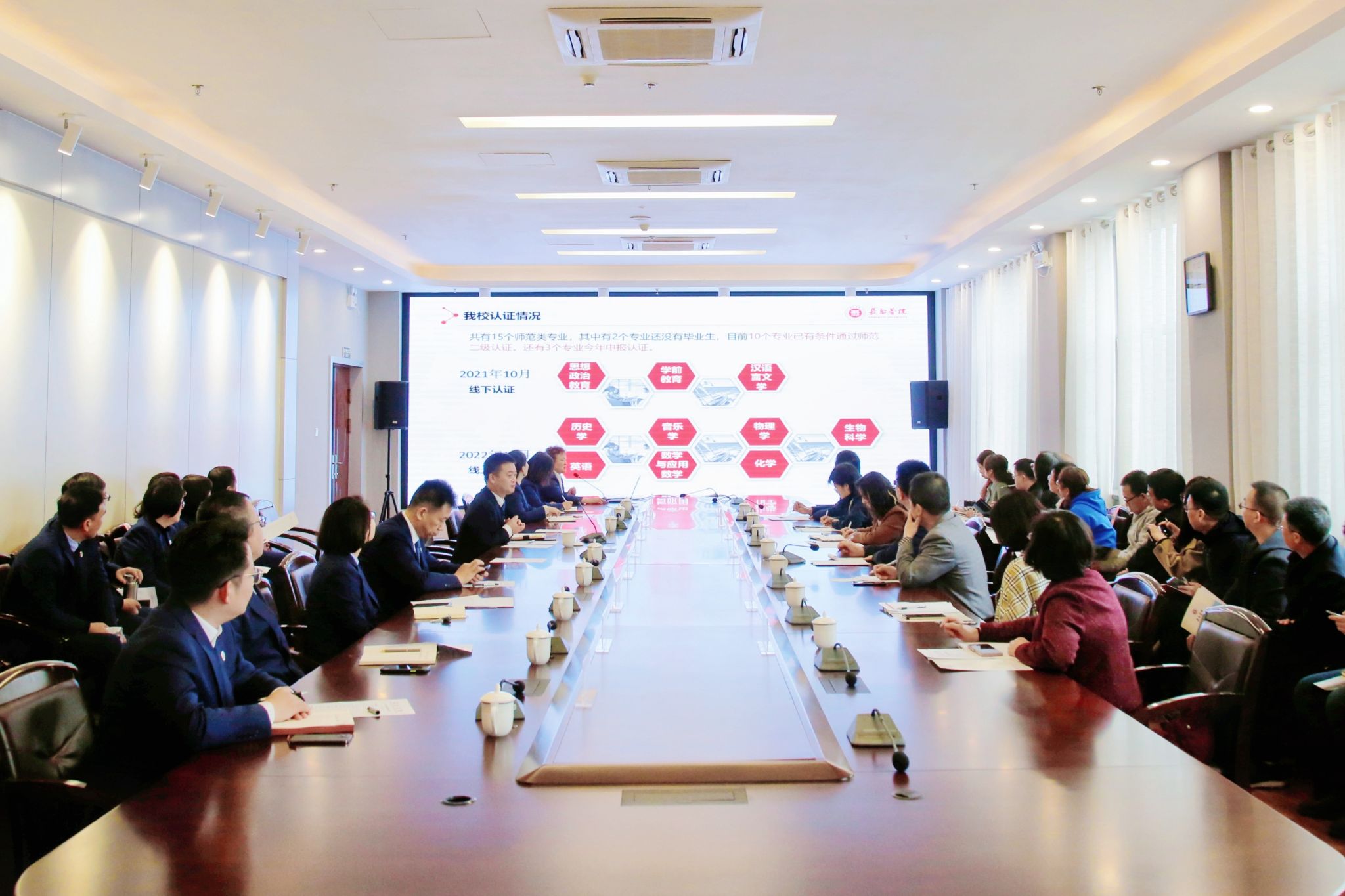 会上,教务部主任杨晓娟介绍了beat365师范类专业认证的相关情况和工作经验。
