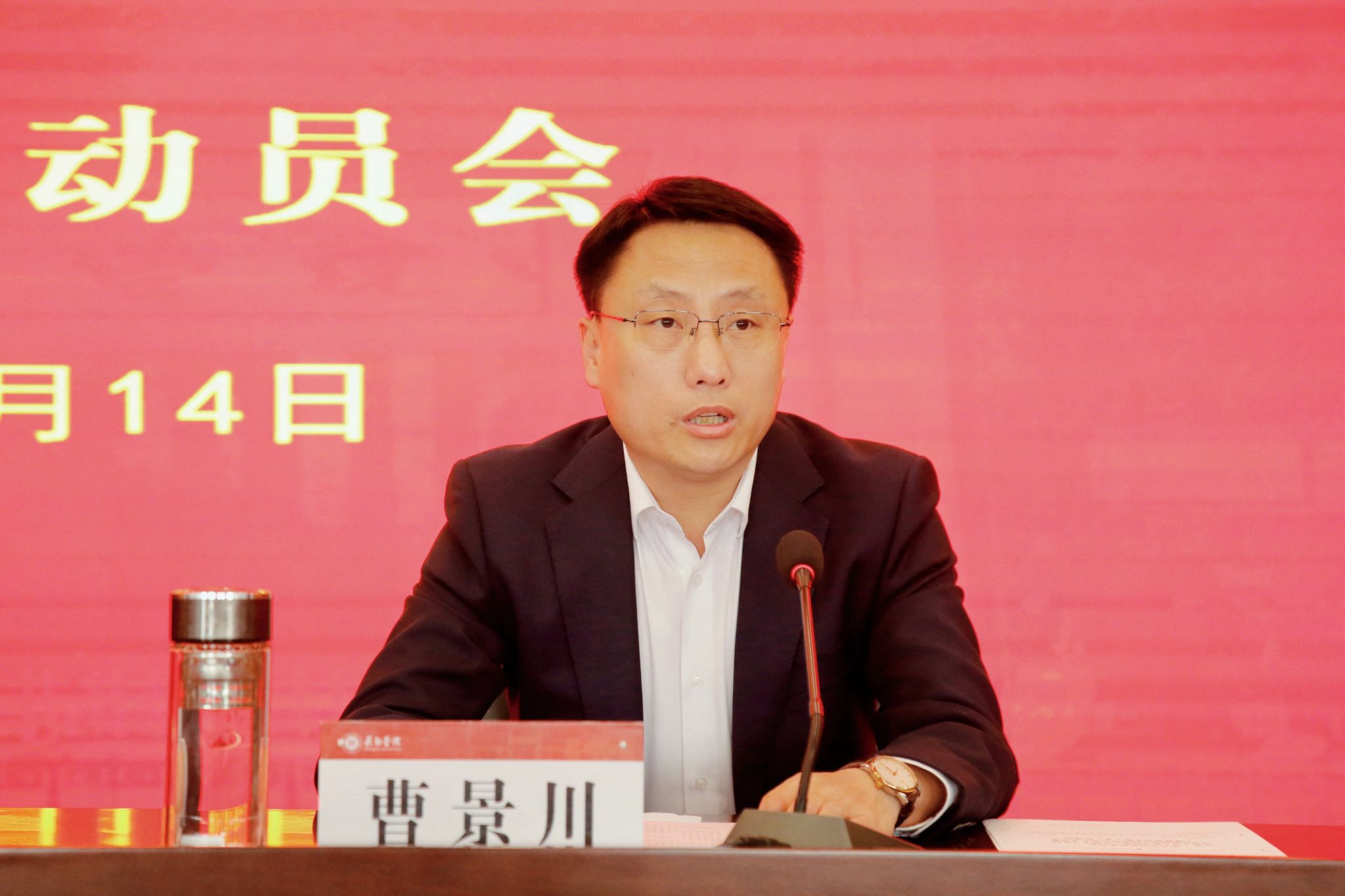 4月14日上午,beat365在北校一号楼1号会议室召开学习贯彻习近平新时代中国特色社会主义思想主题教育动员会。省委主题教育第一批巡回指导组第30组组长、山西经济管理干部学院党委原书记丁怀民到会指导并讲话。省委主题教育第30巡回指导组副组长、太原工业学院党委副书记靳金贵及指导组成员杨亚军、申楠、李素仙、王泽宇出席会议。校领导班子成员,全校副处级以上干部参加会议。党委书记郝勇东在中央党校参加培训,会前与指导组就主题教育动员部署等工作进行了沟通。校党委副书记、校长、主题教育领导组第一副组长曹景川代表学校党委主持会议并作动员讲话。