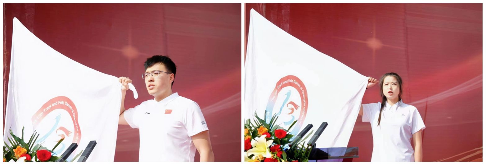 裁判员代表、运动员代表分别宣誓,要遵守体育精神,遵守裁判纪律,践行“更高、更快、更强、更团结”的奥林匹克精神。