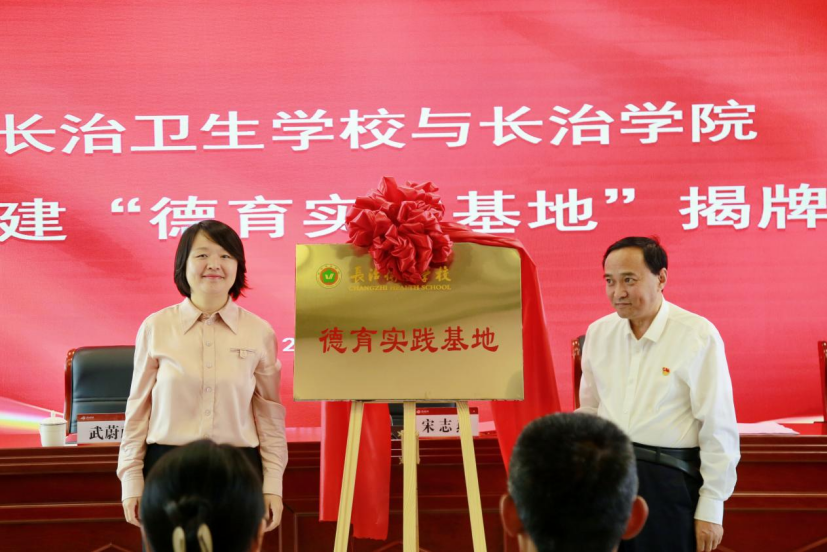会上,党委副书记宋志燕和长治卫生学校校长崔效忠代表双方学校共同签署《德育实践基地共建协议书》,并为长治市卫生学校“德育实践基地”揭牌。