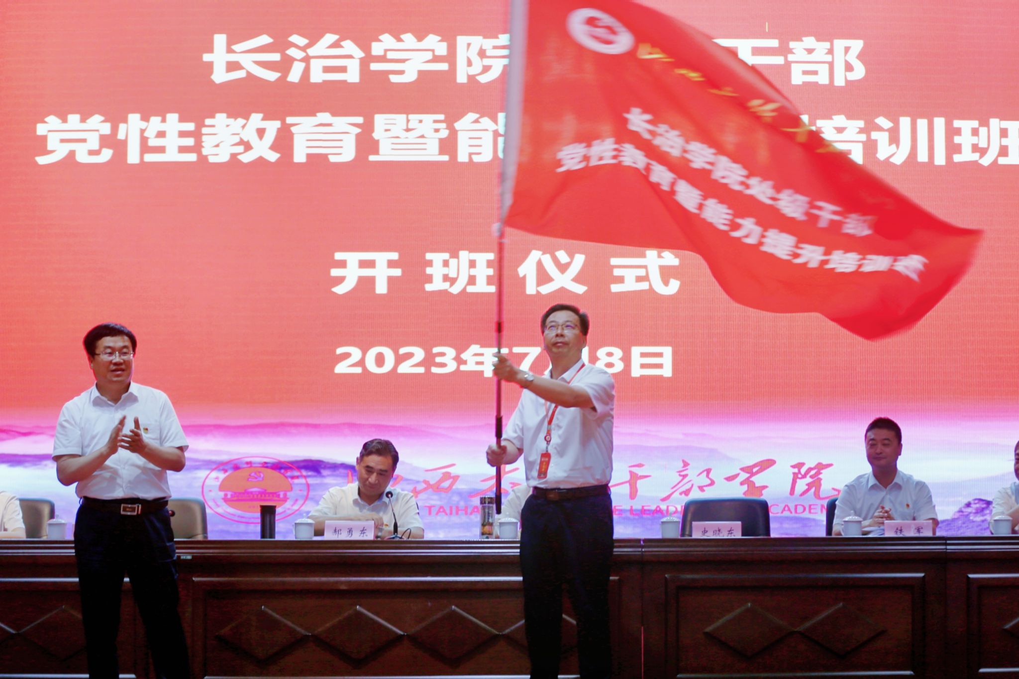 开班式上,高怀碧为beat365处级干部培训班授旗,beat3652023年处级干部党性教育暨能力提升培训班班长、校党委副书记史晓东接旗。随后,史晓东为各组组长授旗。