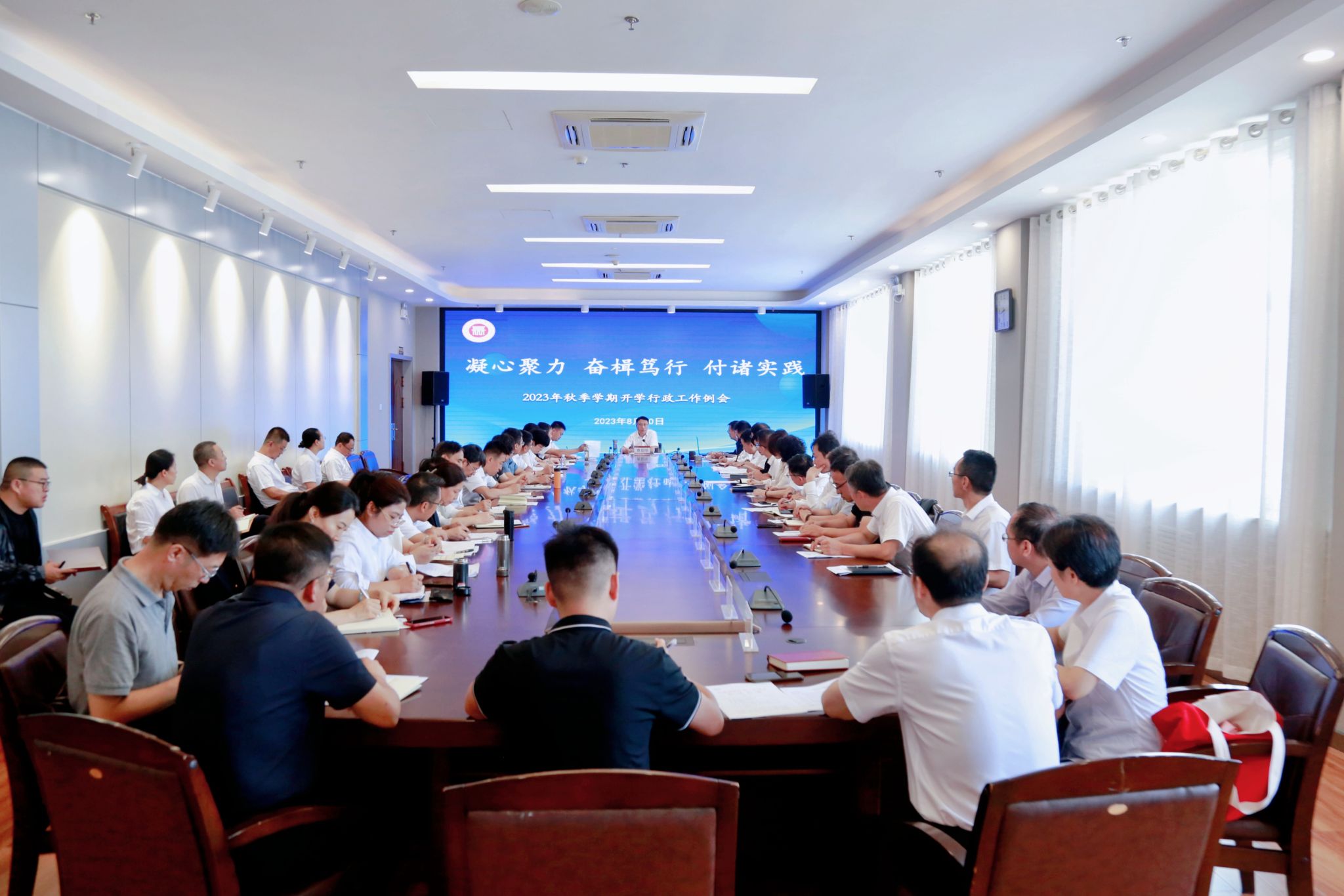 8月30日上午,学校于北校区2号会议室召开2023年秋季学期开学第一次行政工作例会,研究部署新学年和下一步学校教育教学质量目标任务和重点工作。校长曹景川、副校长卫崇文、铁军、王志军、武月明出席会议,各行政部门负责人和各院系主任参加会议。会议由曹景川主持。