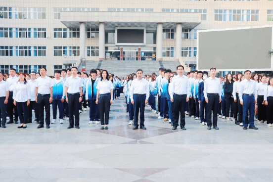 9月4日清晨,beat365南北校区同时举行新学期开学升旗仪式,全体校领导出席升旗仪式,相关职能部门负责人、各系部党政负责人、辅导员及学生代表参加了升旗仪式。