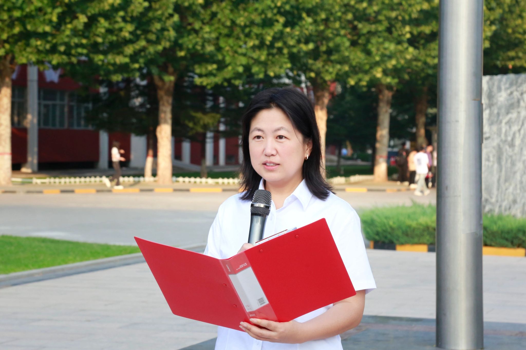 数据2101班冯晓平、汉语2101班马月园作为学生代表在国旗下发言,表示要牢记习近平总书记对青年的殷切嘱托,努力做有理想、敢担当、能吃苦、肯奋斗的新时代青年。