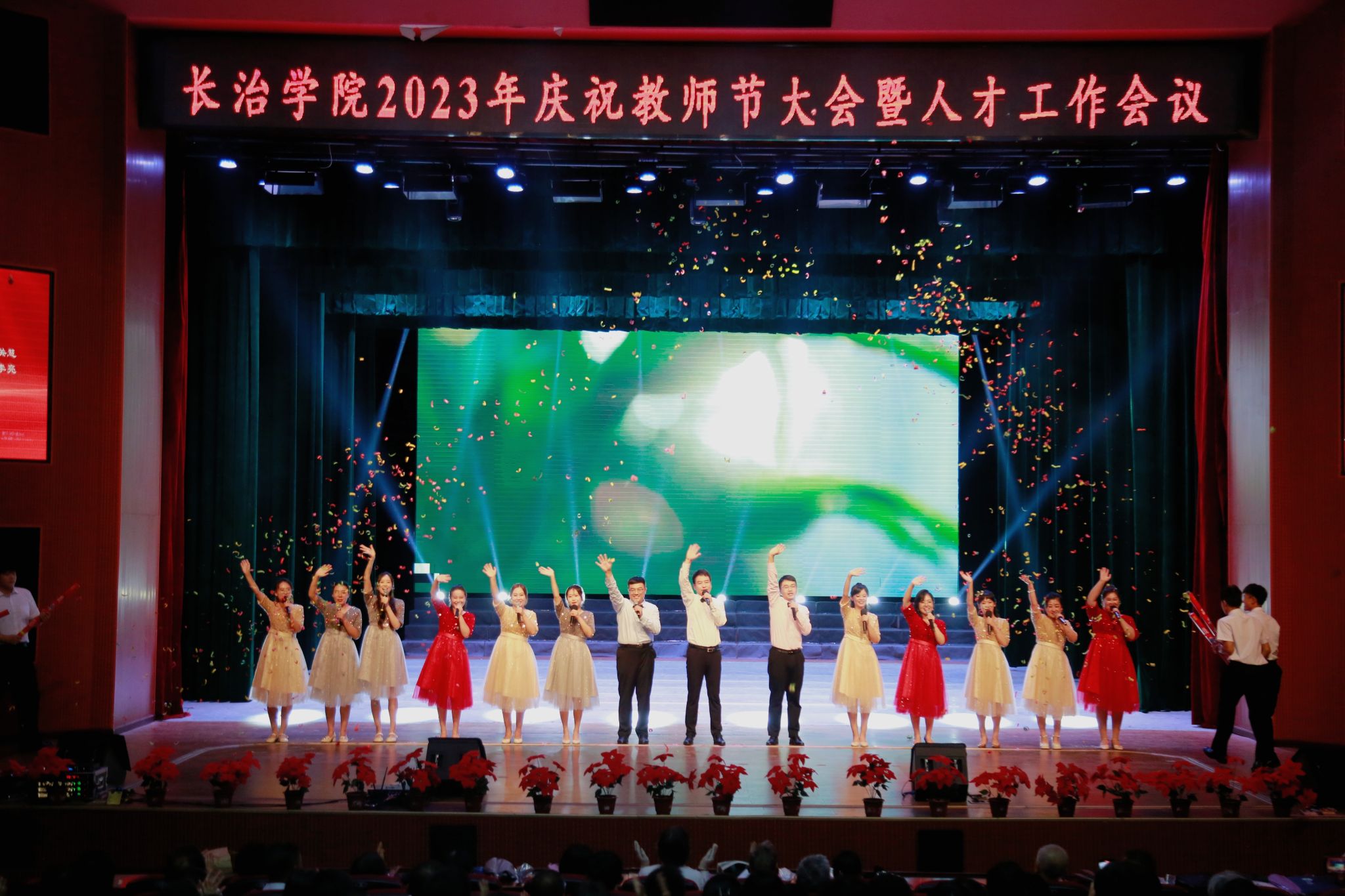 会上,分筑梦太行、春华秋实、时代华章、扬帆起航四个篇章,学校教职工和离退休老教师以及音乐舞蹈系师生表演了师生自创的诗朗诵《我深爱的讲台》、歌曲《向云端》《无悔的倾诉》《敬业腾飞助担当》和长院改编版的《可能》等精彩的文艺节目。