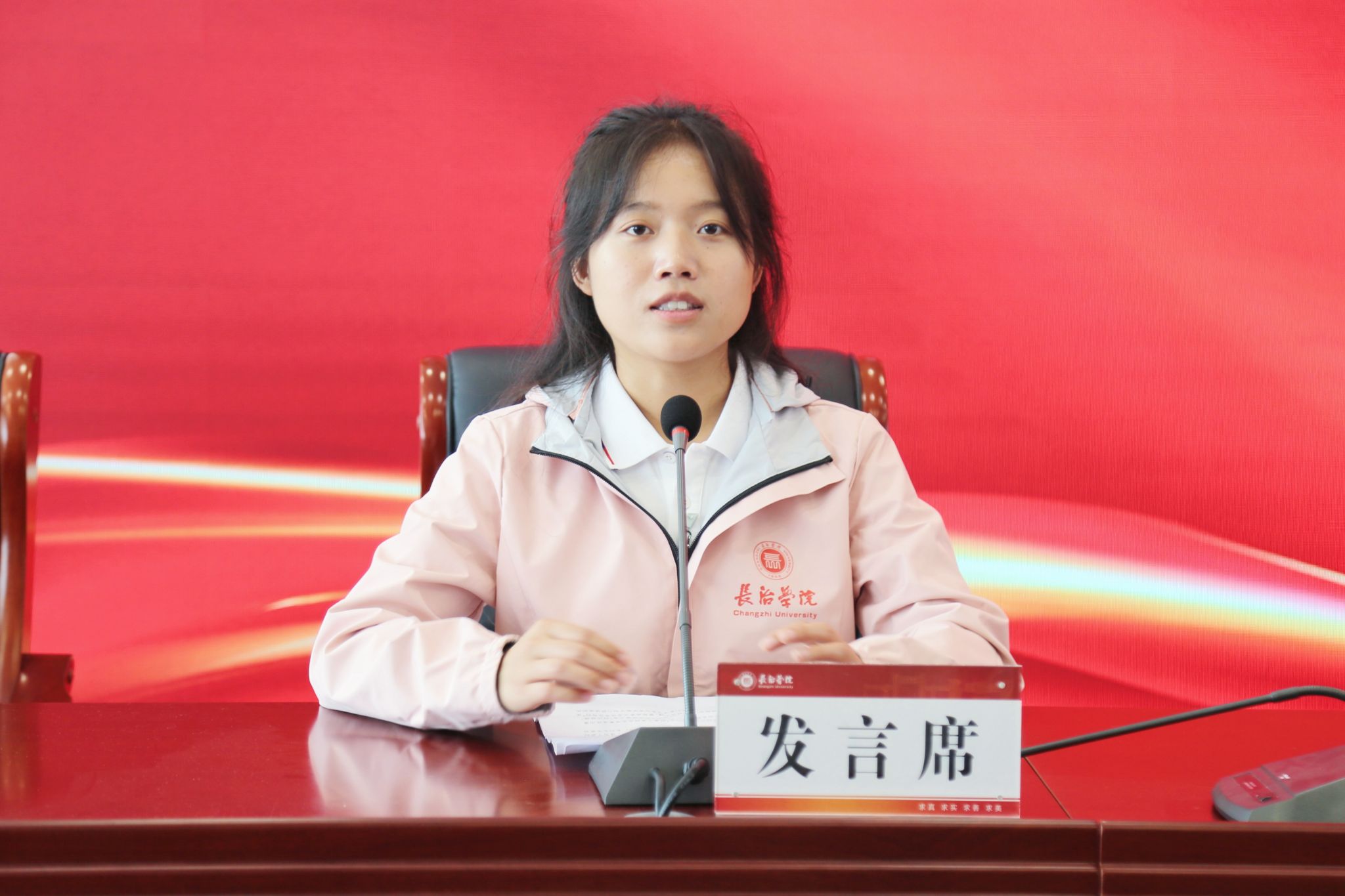 物理学专业2021级王朋燕同学作为先锋队学生代表发言。她表示,先锋队将深入百色,追寻文秀足迹,重走文秀走过的路,寻访文秀的光辉历程。同时,发挥自身专业所长,为百色教育发展贡献力量,展现长院学子的傲人风姿。
