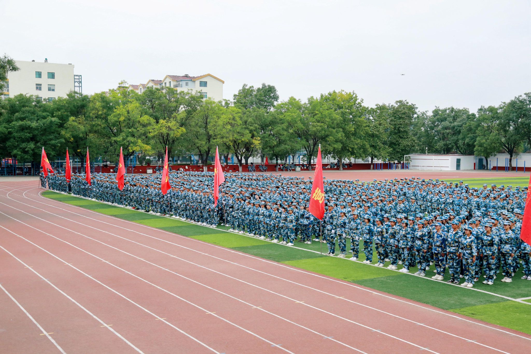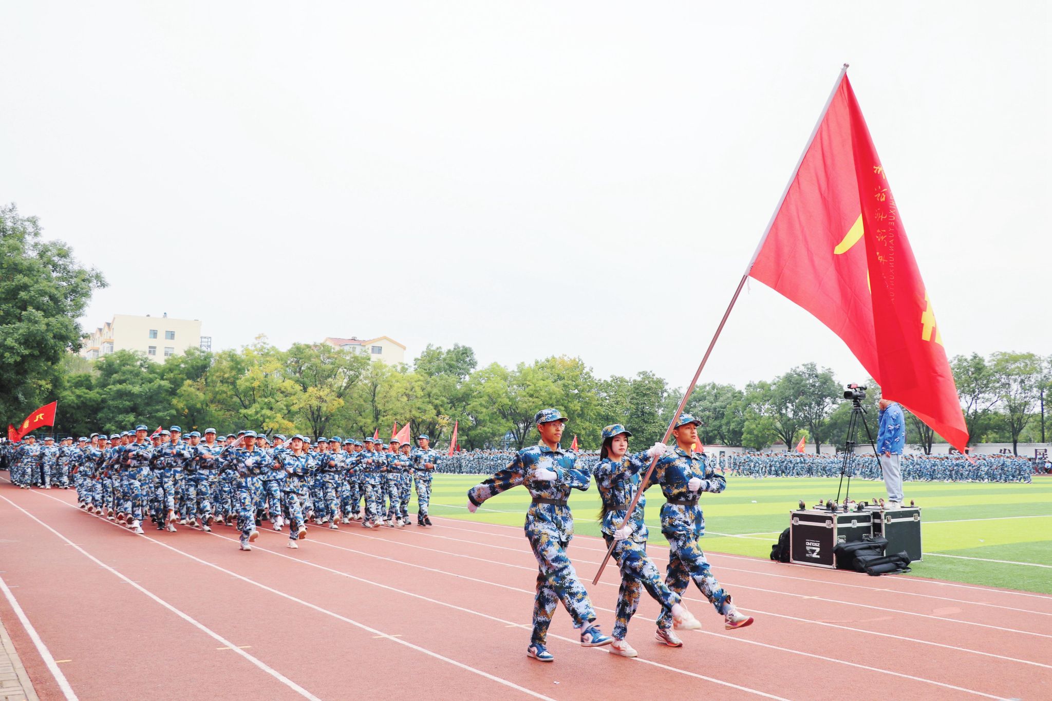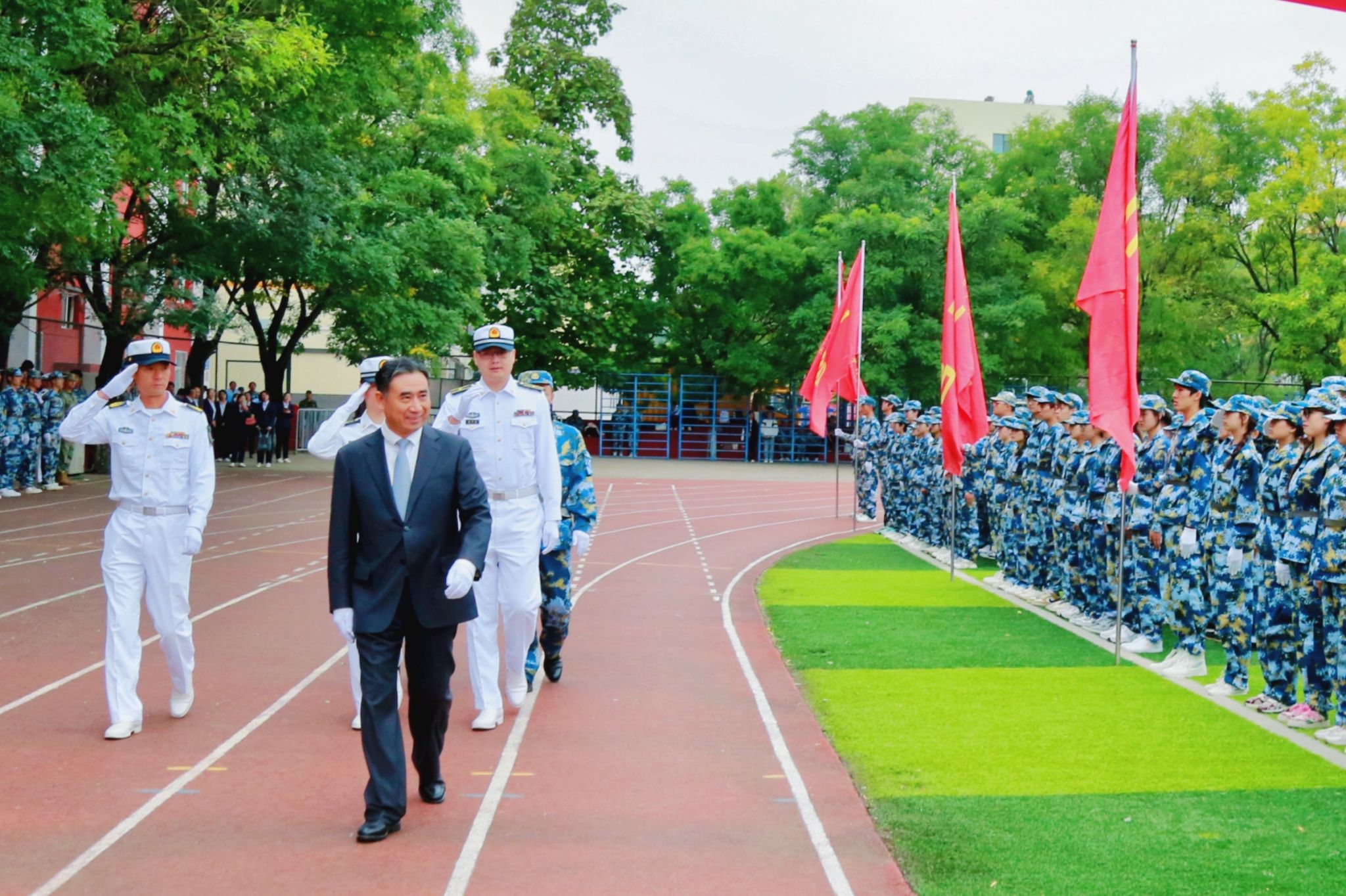 庄严的升旗仪式后,郝勇东在阅兵总指挥刘庆顶等同志的陪同下检阅了学生受训队伍。