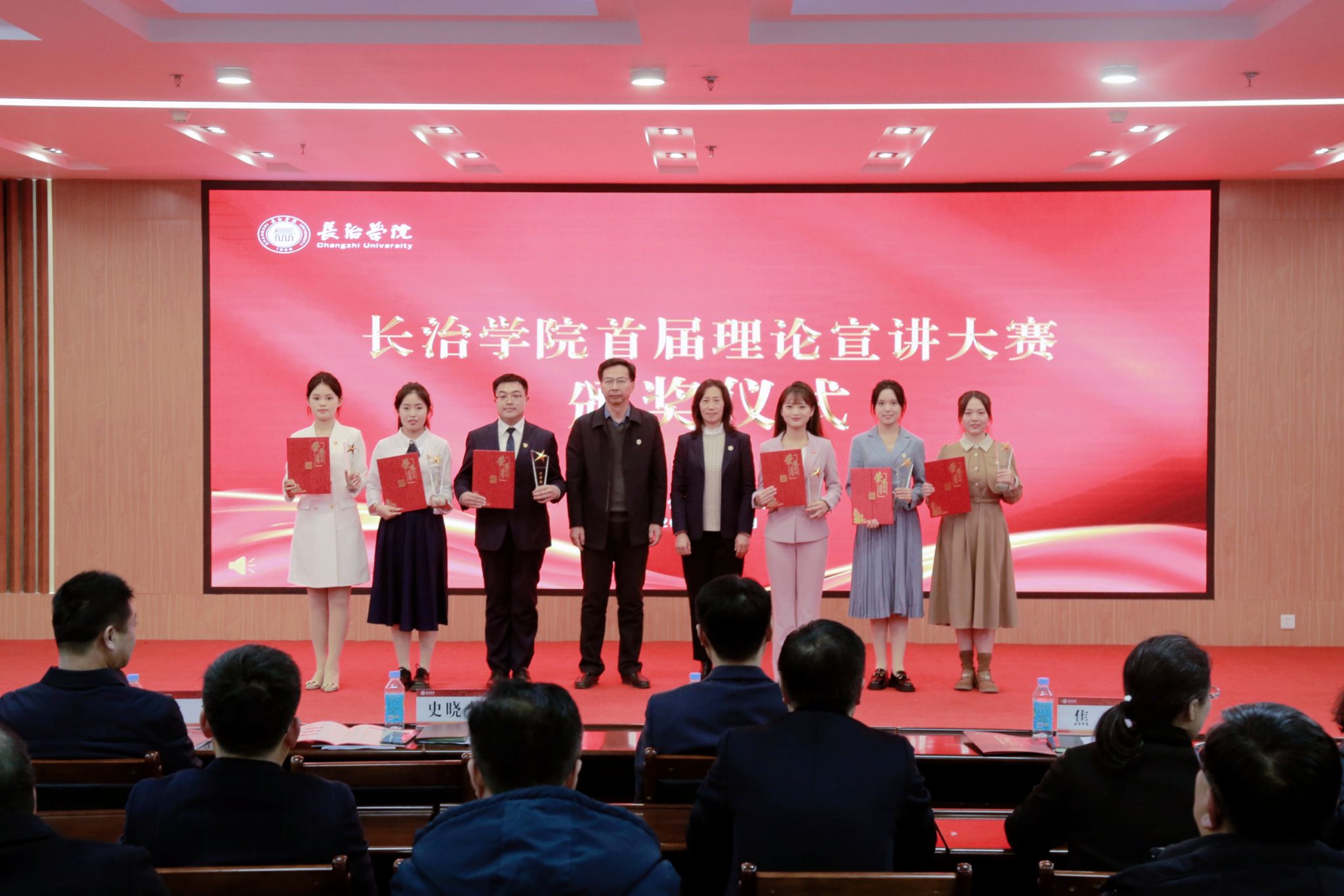 比赛结束后,现场举行了颁奖仪式。校长曹景川作总结讲话,校领导为获奖选手颁奖,党委副书记史晓东为太行先锋宣讲团成员颁发聘书。音乐舞蹈系教师李庄丽、教育系教师刘赟、法律与经济学系学生高慧洁、音乐舞蹈系学生张慧作为教工组和学生组获奖选手代表进行了现场宣讲展示。