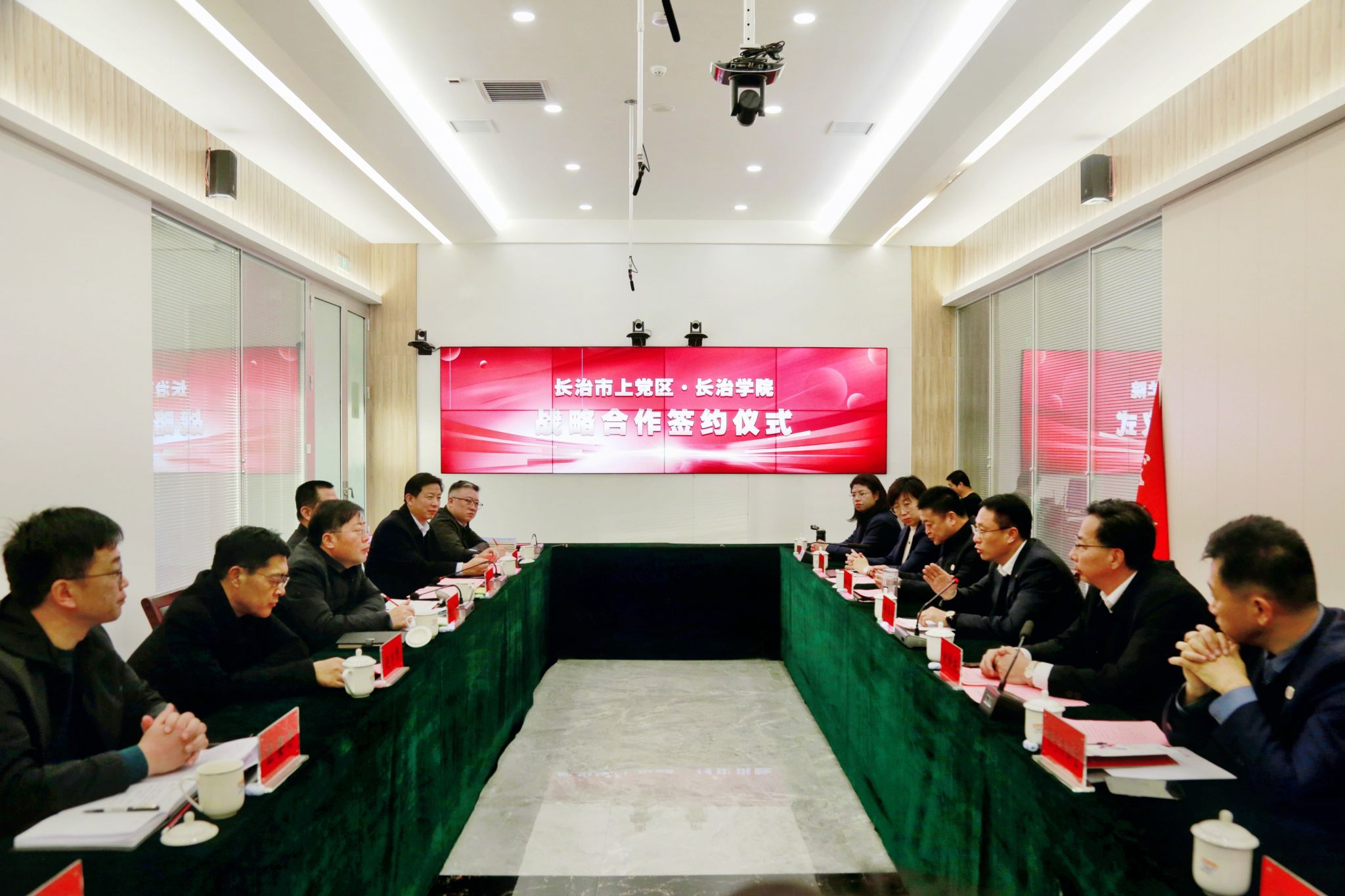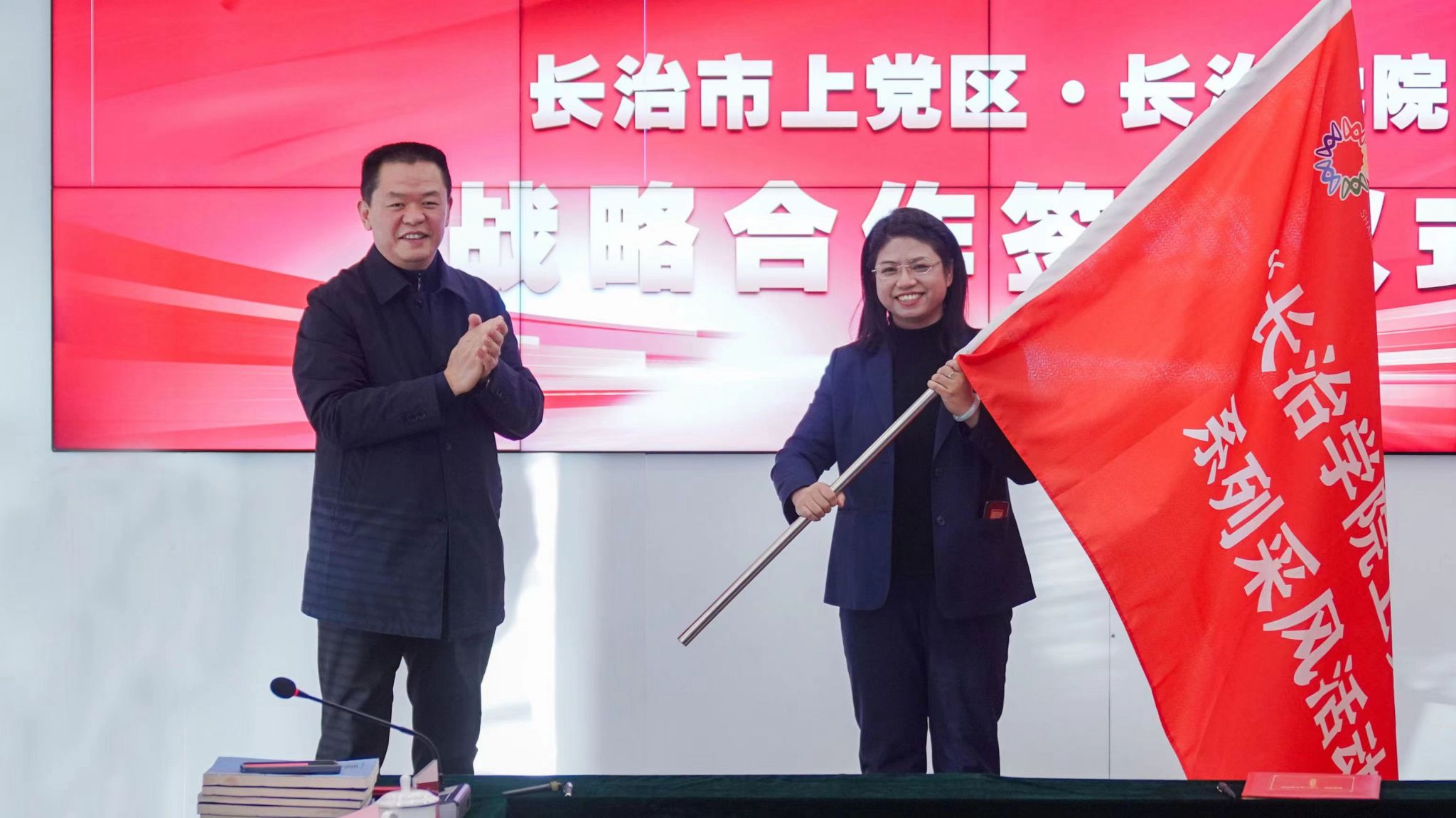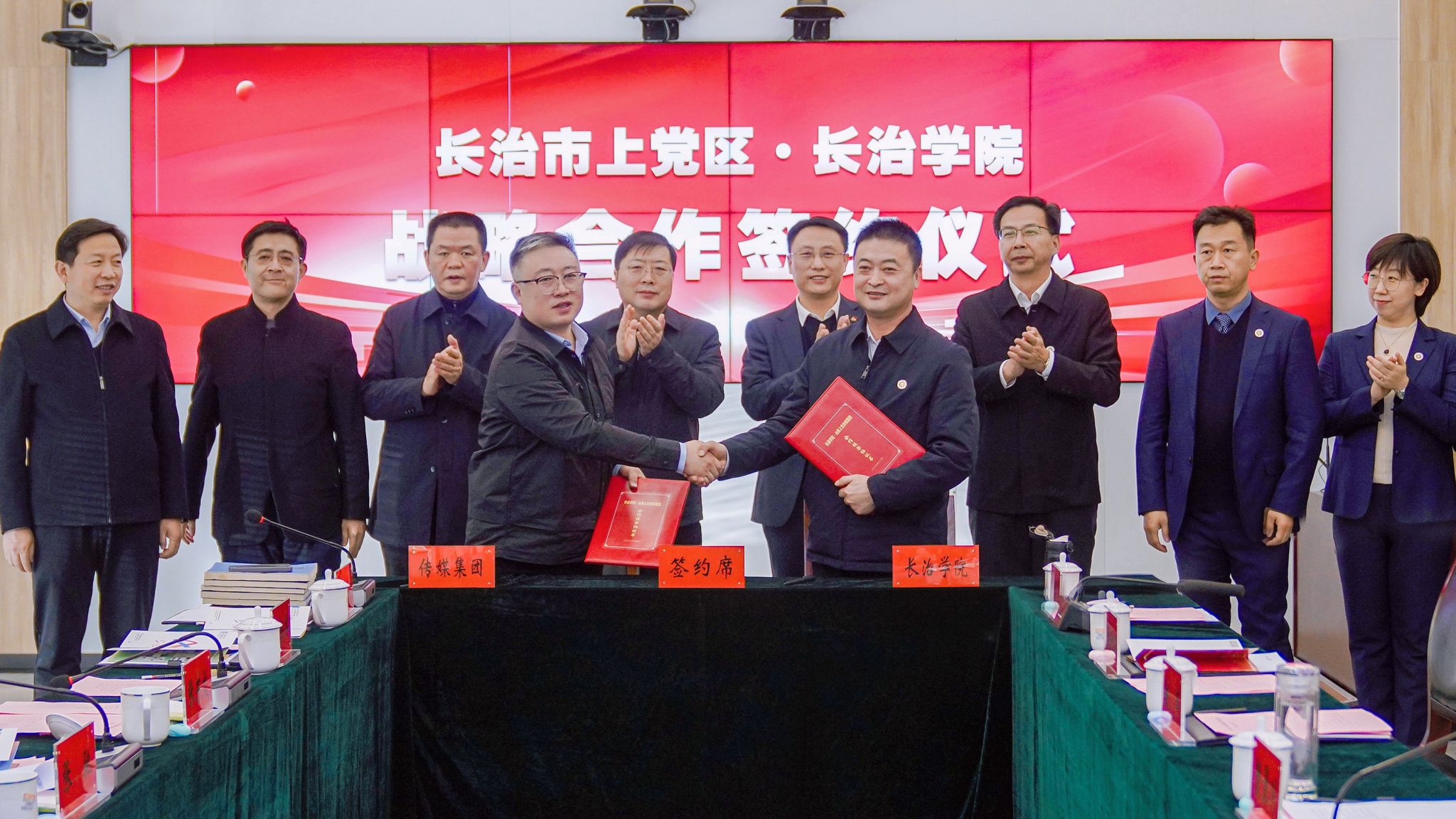 随后,副校长铁军与上党区委宣传部副部长、融媒体中心主任郭向明代表双方签订了战略合作框架协议并合影留念。