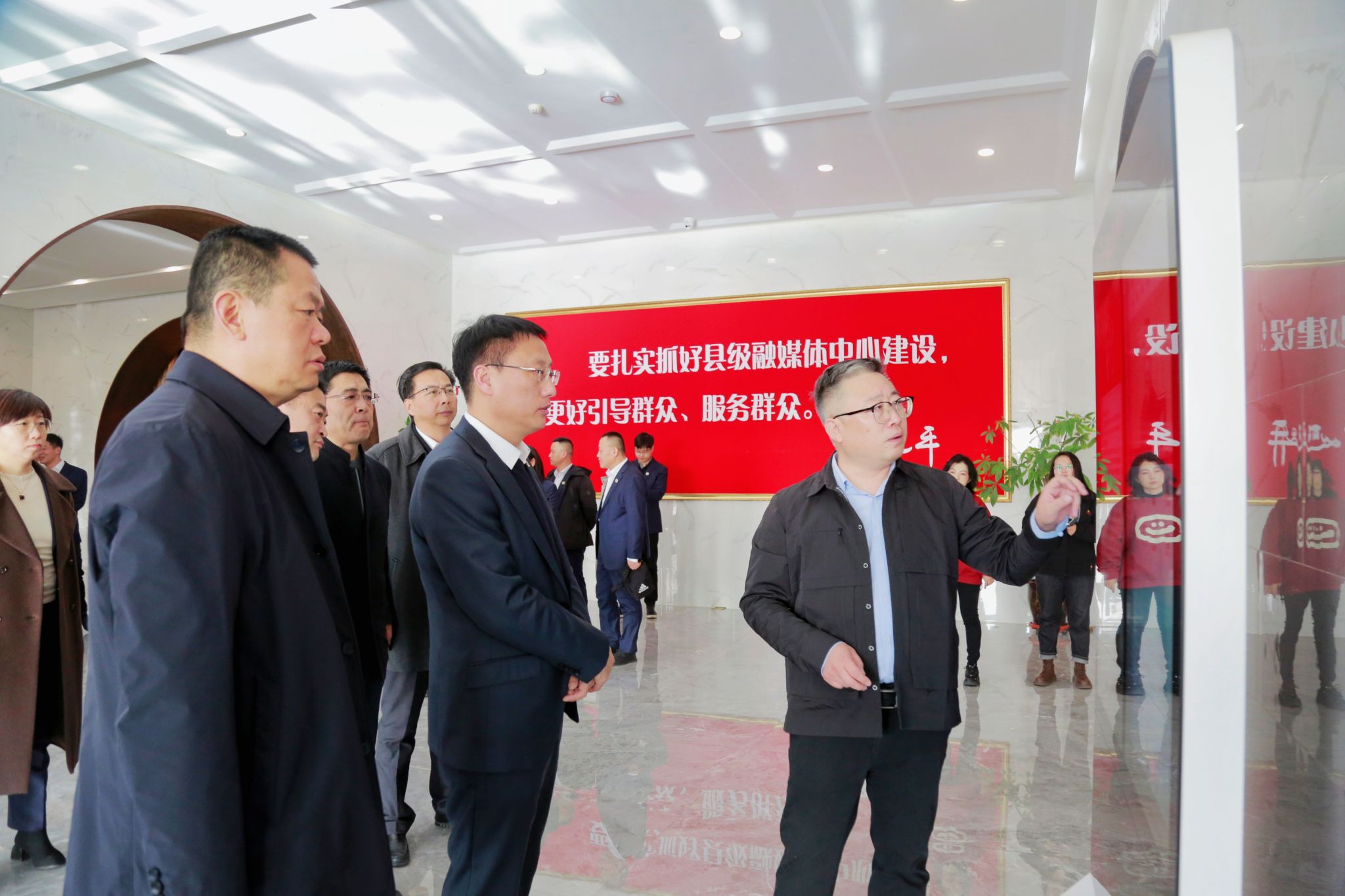 签约仪式前,曹景川校长一行参观了上党区融媒体中心指挥大厅、播出控制中心、电商部及上党区人民广播电台等演播录制场地,看望了beat365实习学生,全方位了解了上党融媒融合激发活力、科技赋能传播、文创点亮上党的路径和生动实践。校长办公室、党委组织部、人才工作部、学生工作部、教务部、科研部、审计部、就业创业指导中心等职能部门负责人以及中文系、美术系、音乐舞蹈系、体育系教师代表陪同考察。