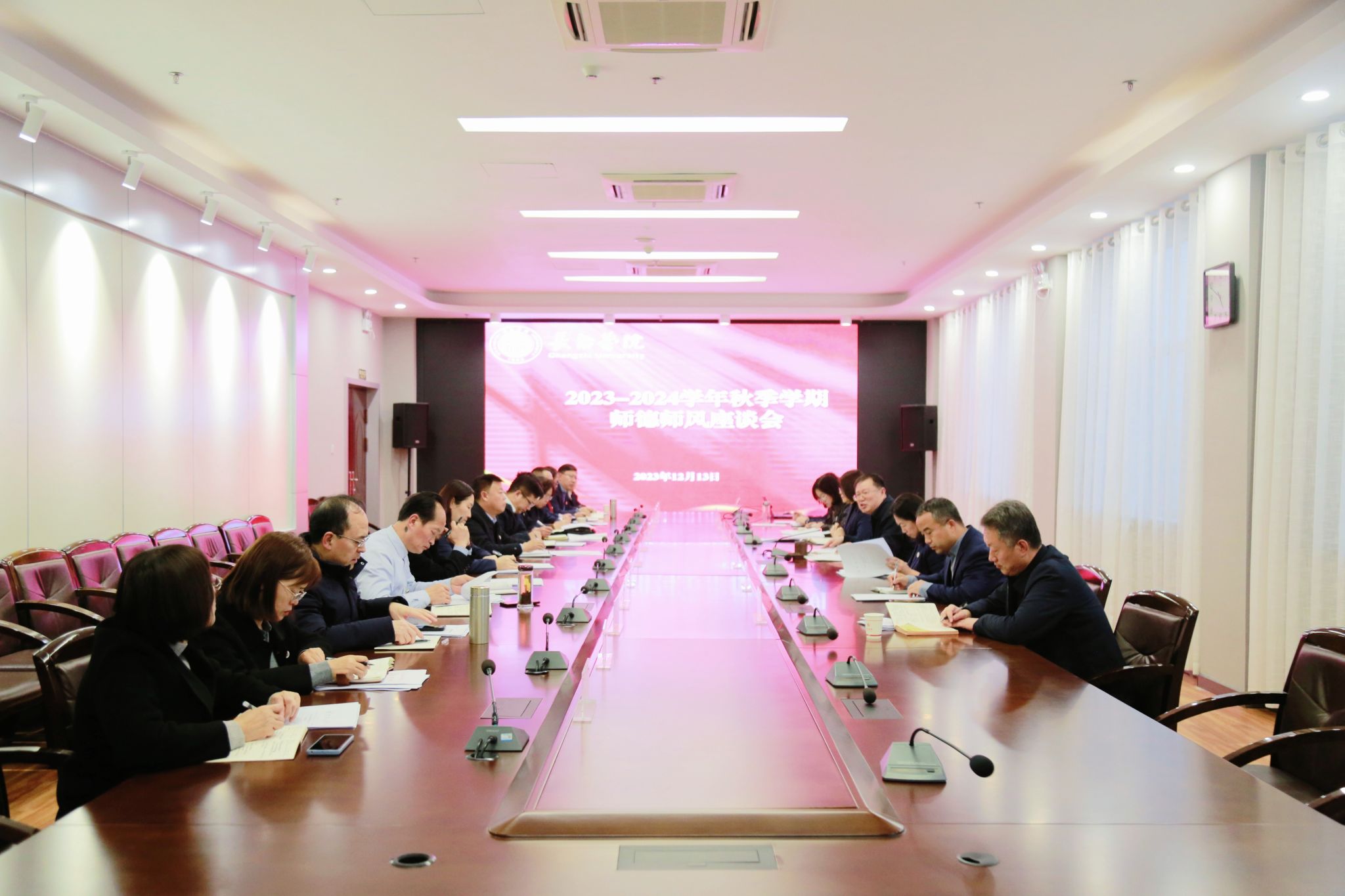 会后,beat365召开了2023-2024学年秋季学期师德师风座谈会。座谈会由卫崇文主持,党委宣传部、学生工作部、教师工作部、教务部、科研部负责人和各二级党组织书记参加。座谈会上,大家学习了相关文件,围绕本次“思政与师德师风课”的学习感悟,进行了交流研讨。卫崇文对各二级党组织落实好会议要求,带头抓好师德师风建设进行了安排部署。