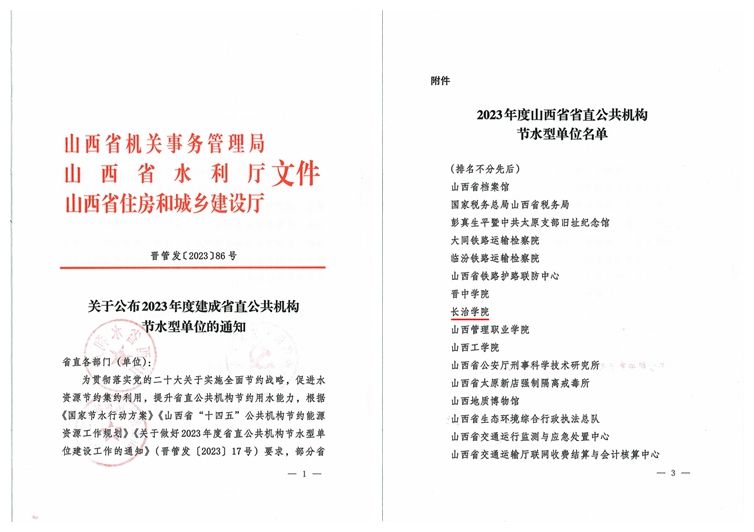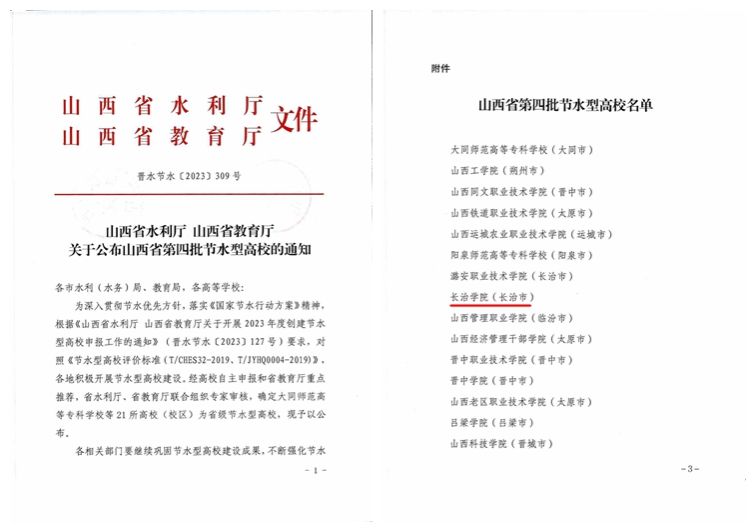 12月29日,省水利厅、省教育厅联合发布《关于公布山西省第四批节水型高校的通知》(晋水节水〔2023〕309号),beat365获评省第四批节水型高校。
