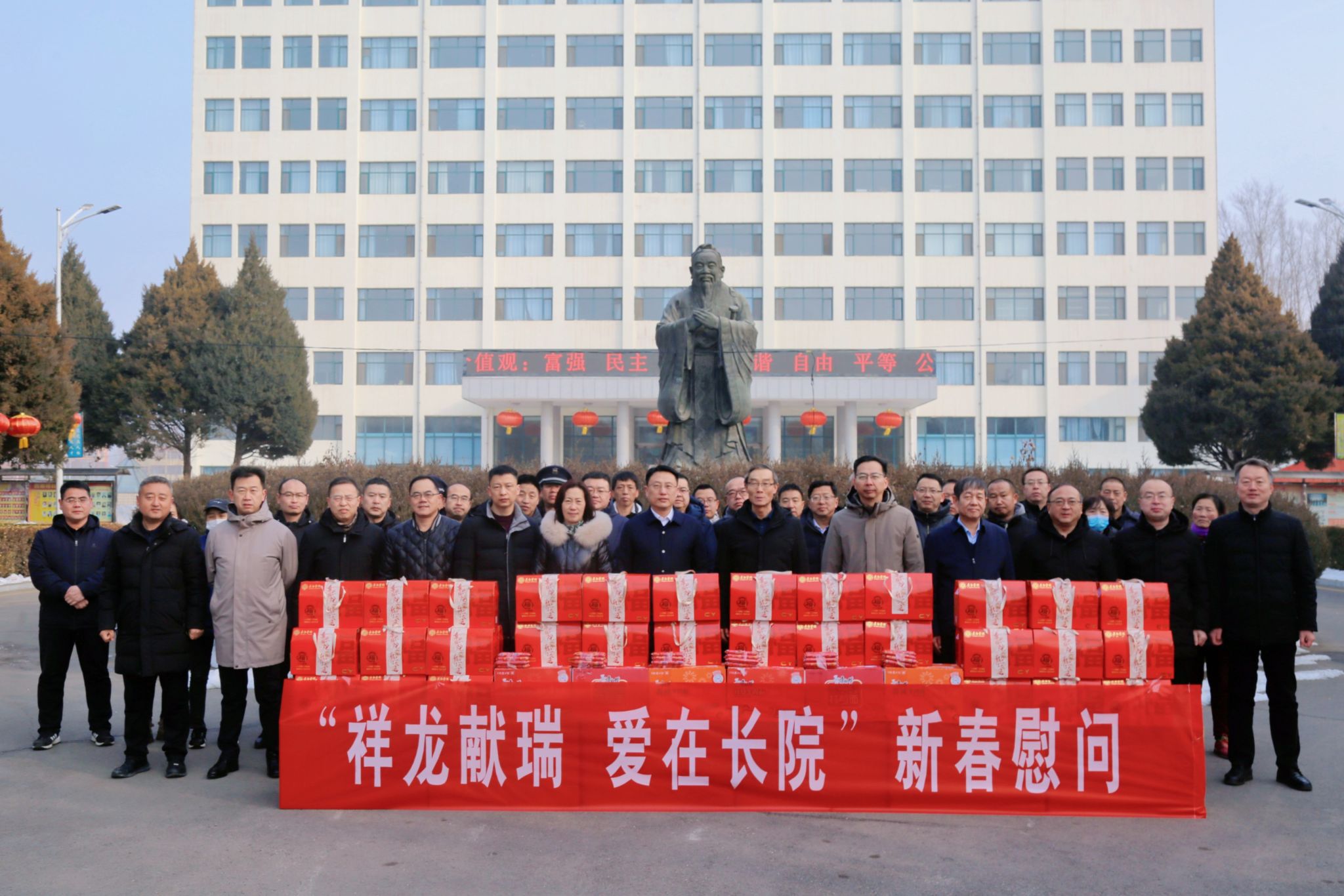 又是一年佳节至,迎春送福暖人心。在新春佳节来临之际,校园内彩灯高挂、缤纷绚丽,处处洋溢着喜迎新春的节日气氛。2月7日上午,校领导曹景川、史晓东、焦雨、武月明来到南北两校区和太行中学,看望慰问春节期间坚守岗位的一线干部职工,为他们送上印有“幸福长院”字样的慰问品,向他们致以节日问候与诚挚祝福。党委办公室、校长办公室、纪检监察办公室、党委宣传部、人力资源部、后勤部、保卫部、工会等部门负责人和相关同志参加活动。