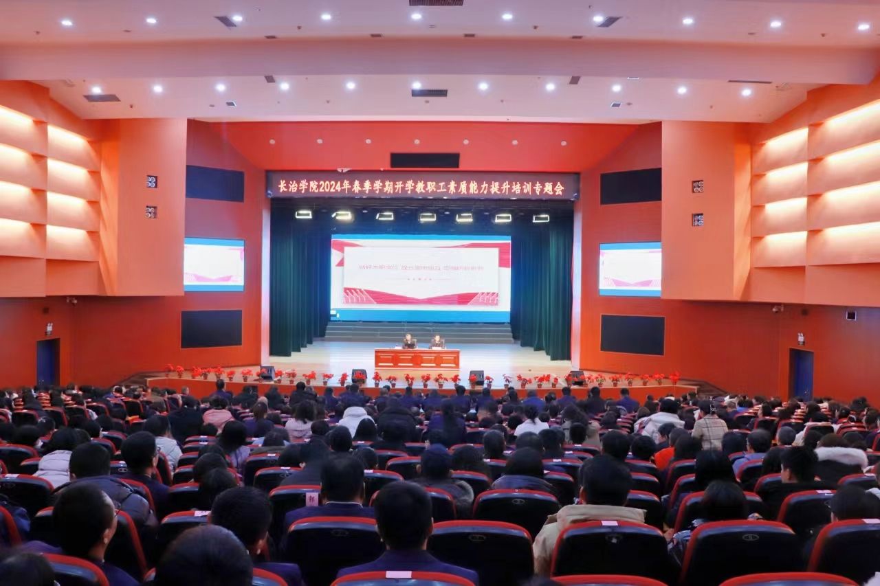 2月26日上午,beat365在北校区实验剧场举行2024年春季学期开学教职工素质能力提升培训会,以学促干开启新学期。山西省委党校马克思主义学院院长、二级教授、享受国务院政府特殊津贴专家刘兆征应邀作辅导讲座。全校党员干部、教职工参加培训。党委书记曹景川主持培训会。