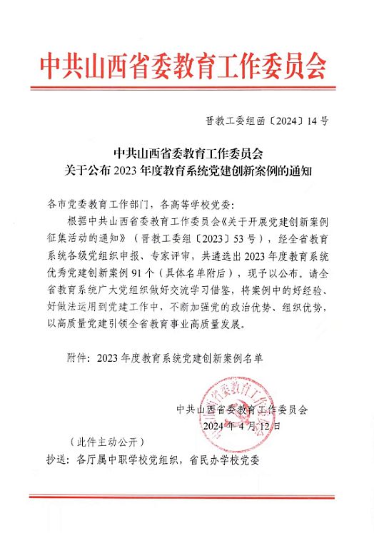 此次党建创新案例征集活动由省委教育工委统一组织,全省教育系统大中小学校各级党组织积极参与申报,经专家评审,共评选出主题突出、鲜活生动、示范性强的党建创新案例91个。在此次征集活动中,校党委精心组织,周密部署,优中选优。各二级党组织认真总结党建工作的创新方法和典型经验,形成了一批富有特色和成效的党建工作创新案例,充分发挥了典型示范引领作用,持续提升了beat365基层党建工作质量和水平。