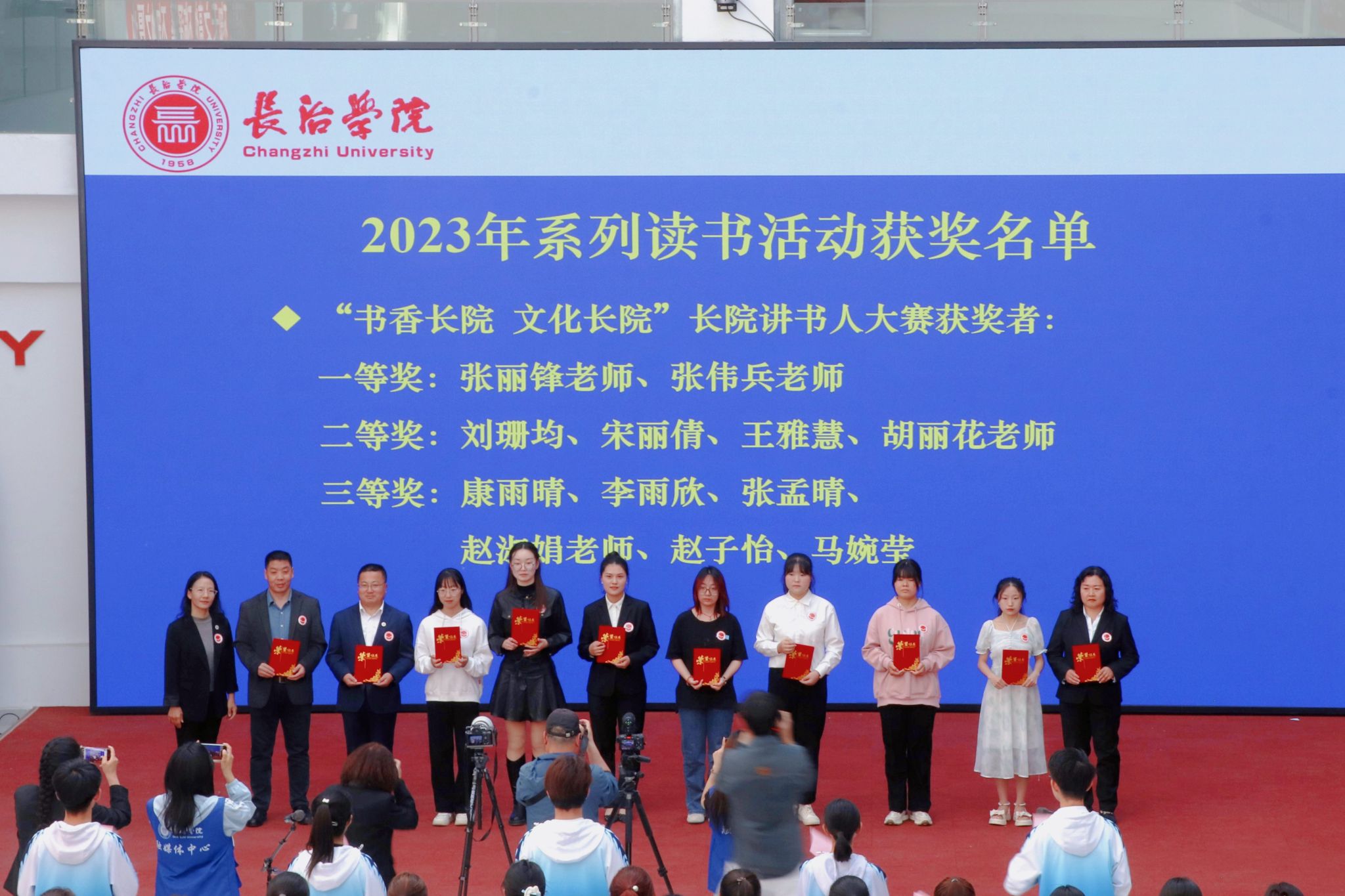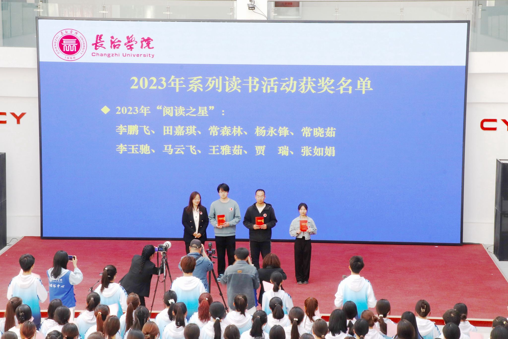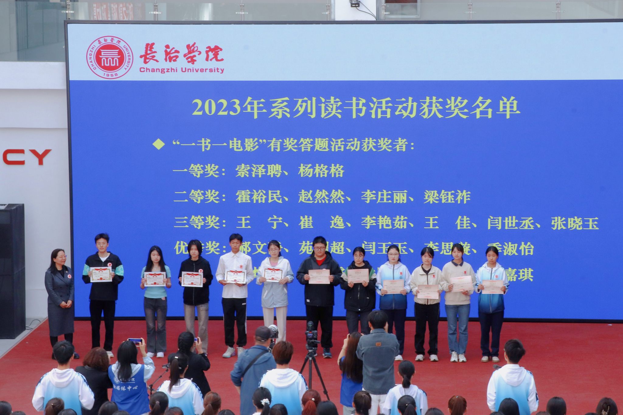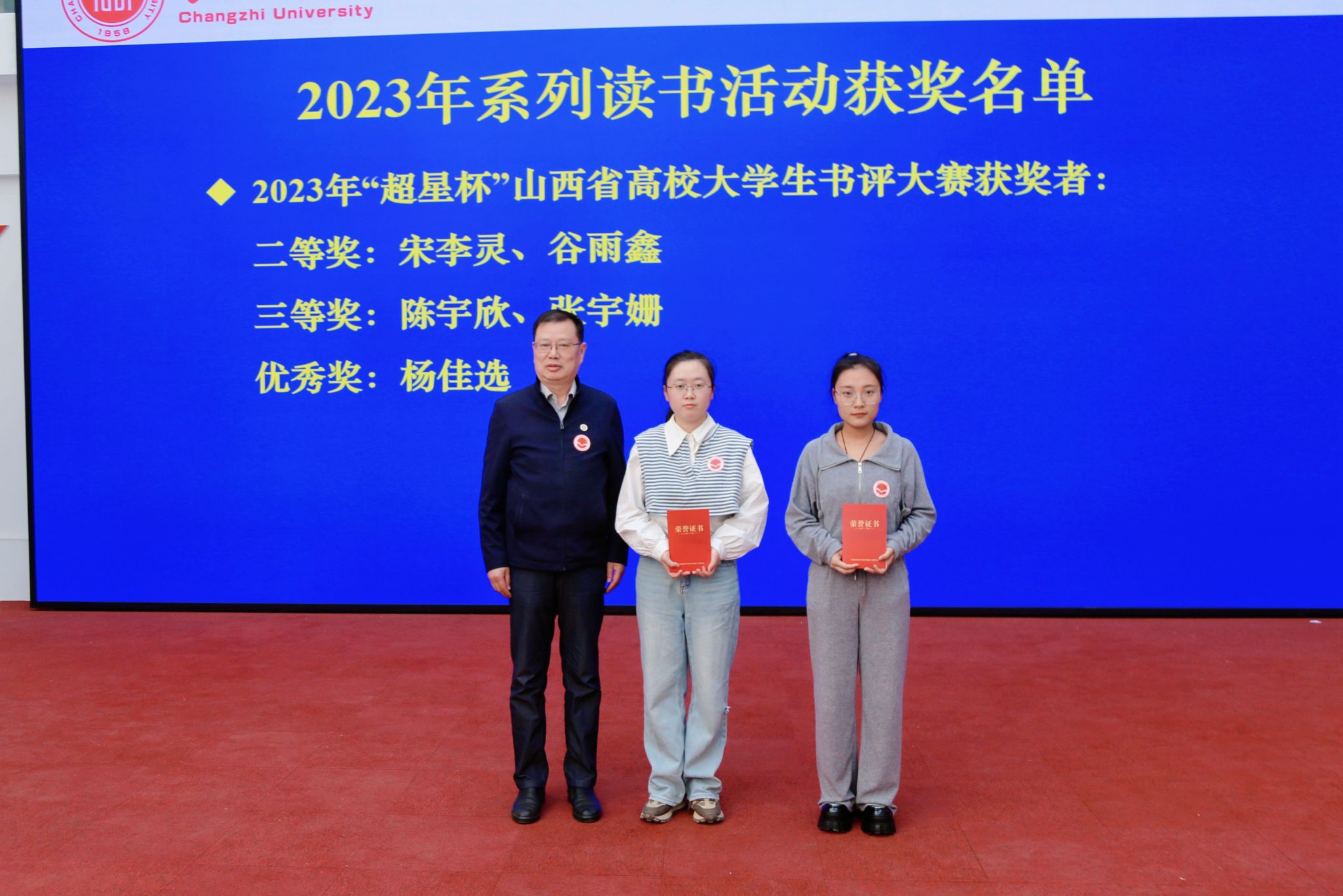 活动现场,为2023年“超星杯”山西省高校大学生书评大赛和2023年beat365“书香长院 文化长院”长院讲书人大赛、“一书一电影”有奖答题活动、“阅读之星”获奖代表颁奖。